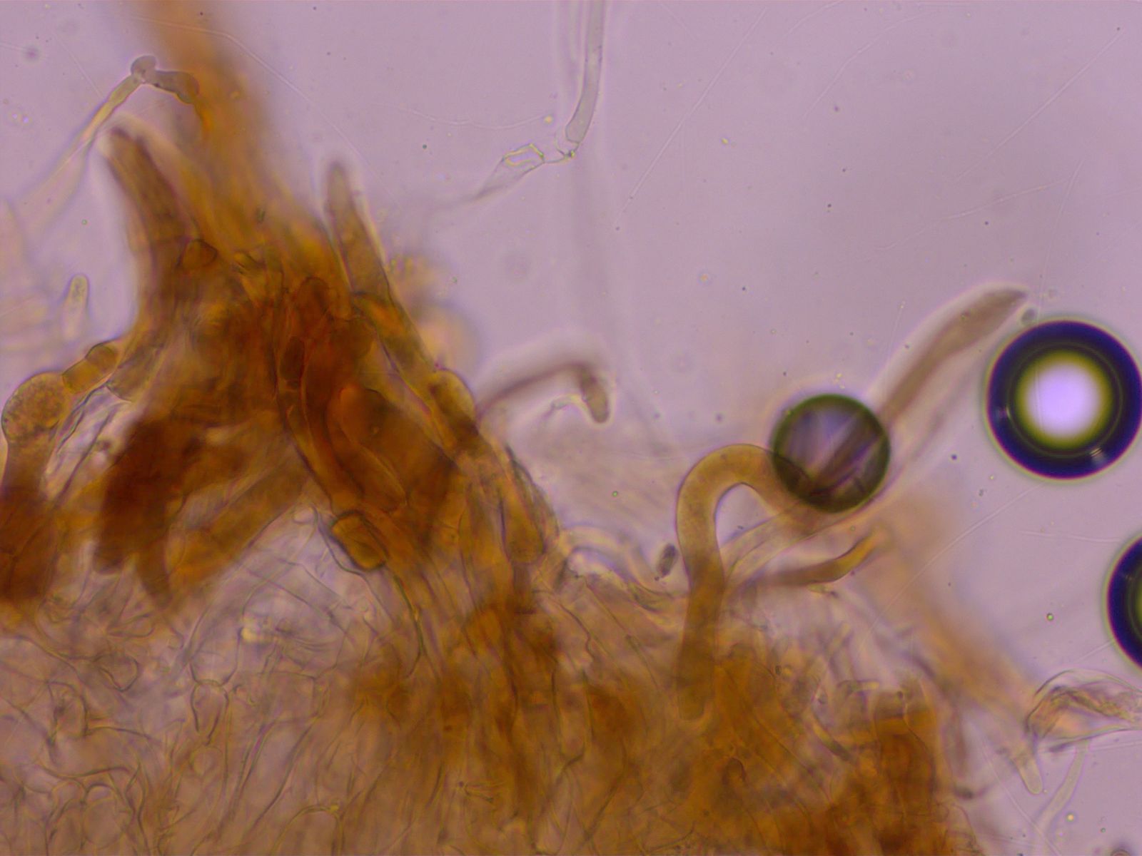 Stipitipellis mit gelbbraunen Hyphenbündeln.