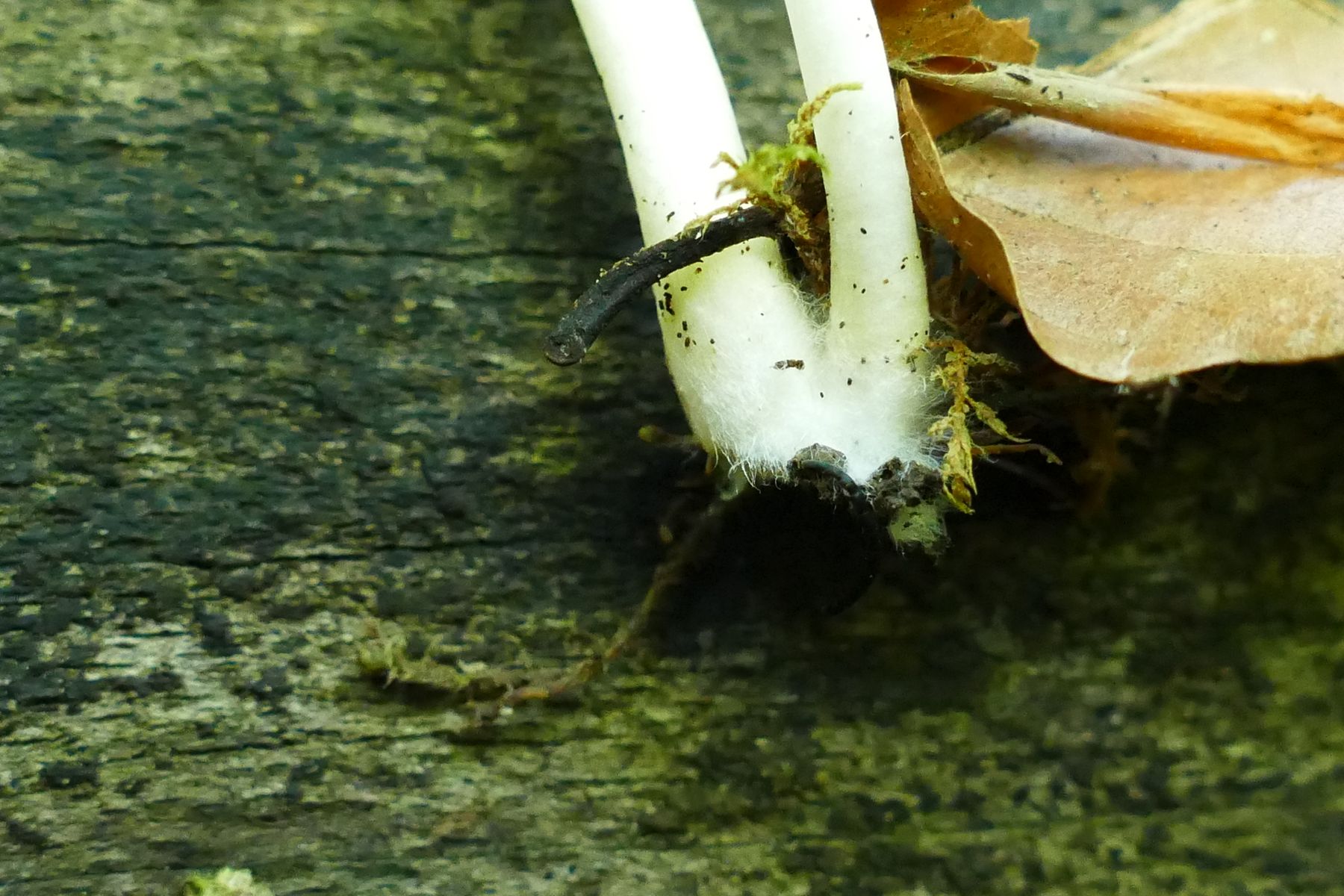 Der kegelige Hut ist recht dünnfleischig und sitzt auf einem dünnen Stiel (max 3,5mm dick).