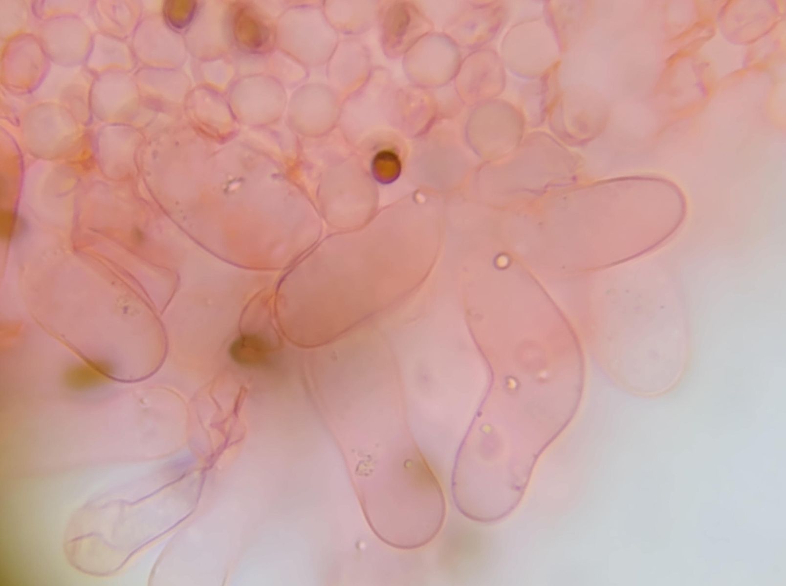 leicht inkrustierte Zystiden an Lamellen(schneiden) und HDS