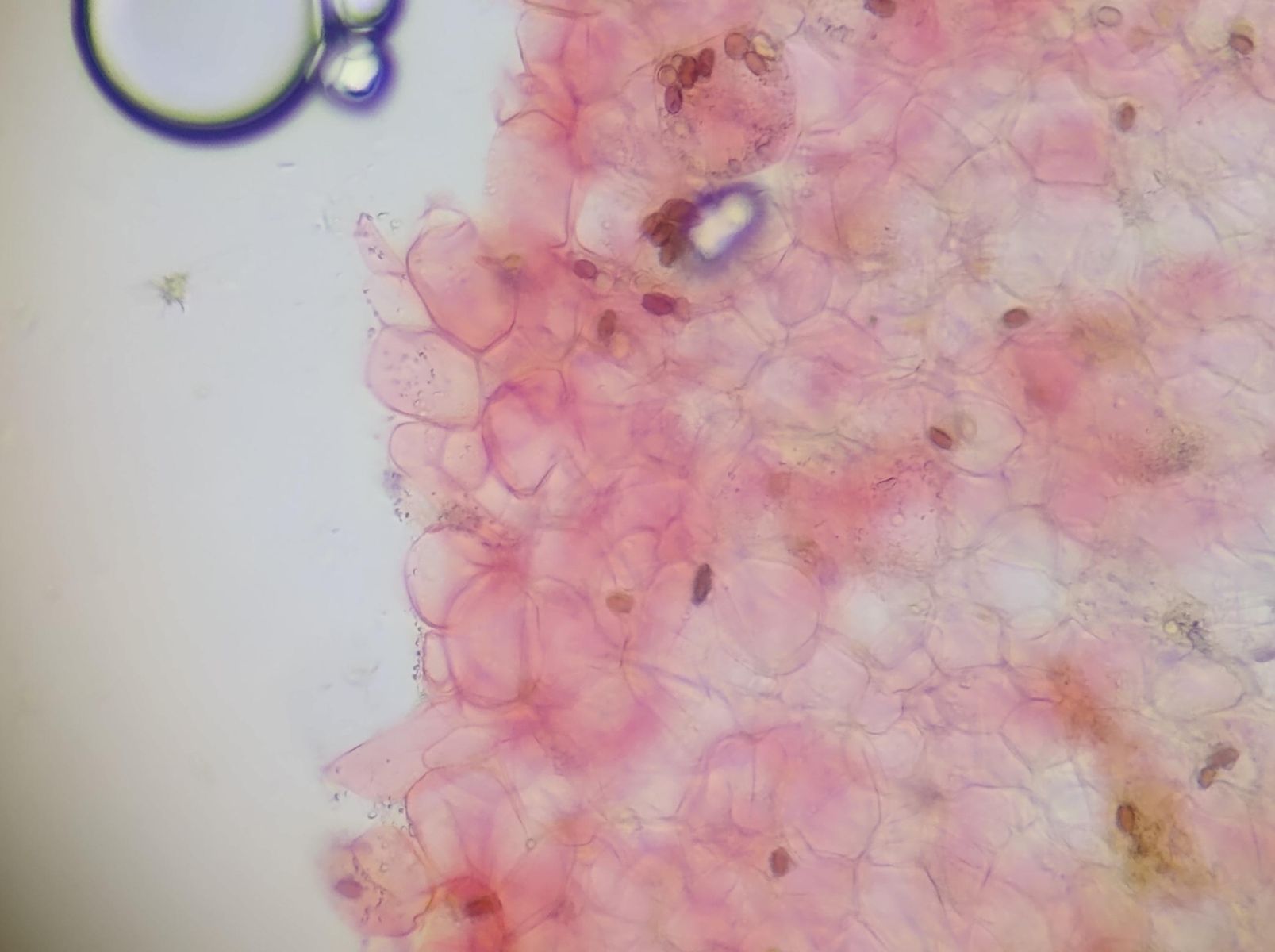 Unter dem Mikroskop lassen sich rundliche Zellen erkennen.