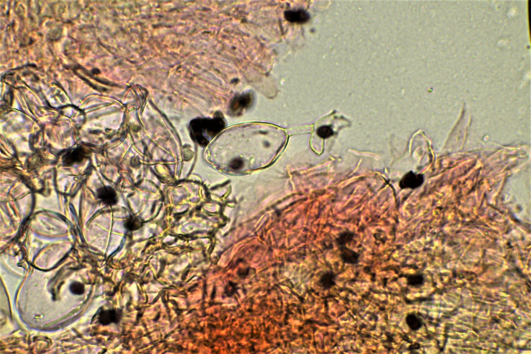 gestern Abend hatten wir zu unserem Stammtisch eine Tintlings-Art auf unserem Tisch, die in einer kleinen Gruppe gewachsen ist . Standort war Wiese direkt auf Erde. Der Tintling verwelkt statt zu zerfließen. Der Hut bis 3cm im Durchmesser, hat eine dunklere bräunliche Mitte, mit kleineren helleren Flöckchen, und ist bis dorthin tiefer gefurcht gerillt. Die Lamellen sind schon recht dunkel schwarzbraun und sind zum Stiel eher angeheftet statt einem Kollar. Der Stiel bis 4 cm lang, ist längs-gerillt ob das von der Trockenheit her rührt weiß ich nicht, die Stielbasis ist etwas verdickt. Mikroskopisch hatte ich ein paar Aufnahmen gemacht, vielleicht kann man ihn noch bestimmen, vielen Dank dafür.