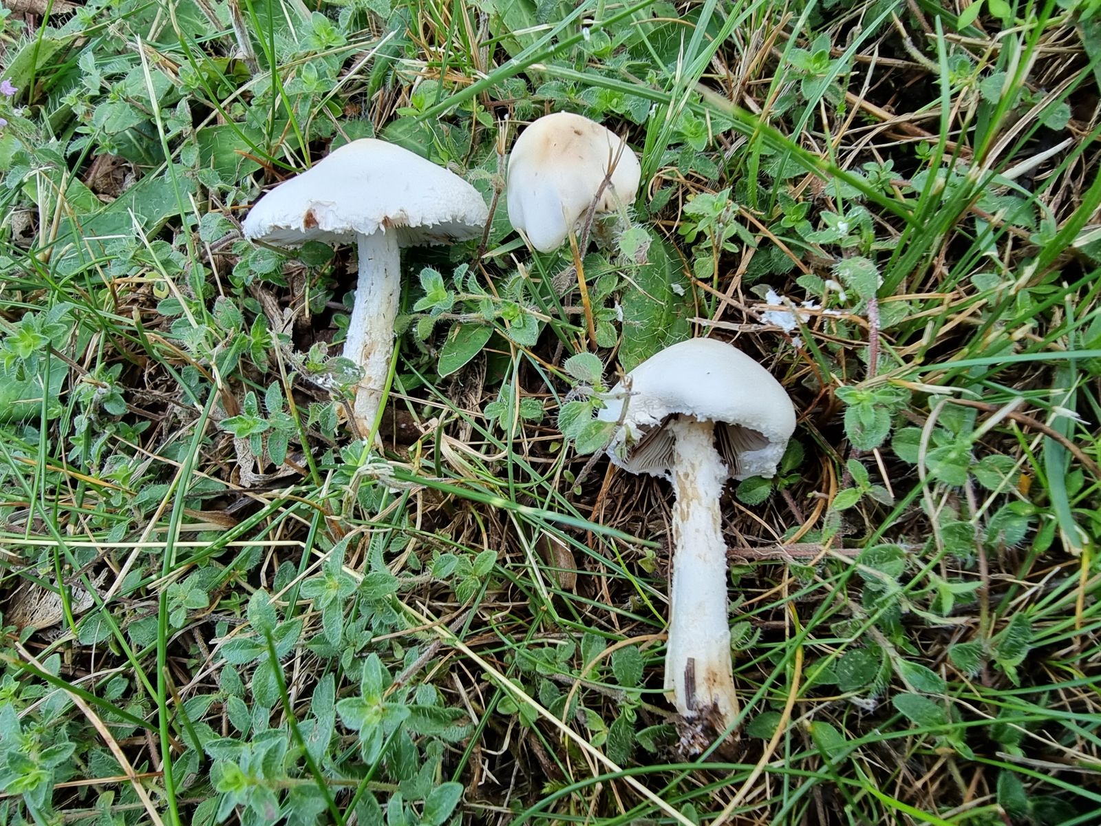 Die Pilzlage ist hier noch sehr mies, darum rechnete ich überhaupt nicht damit irgendwas zu finden. Aber neben der Schaukel standen drei weisse Pilze unter Schwarzem Holunder und Lärchen: