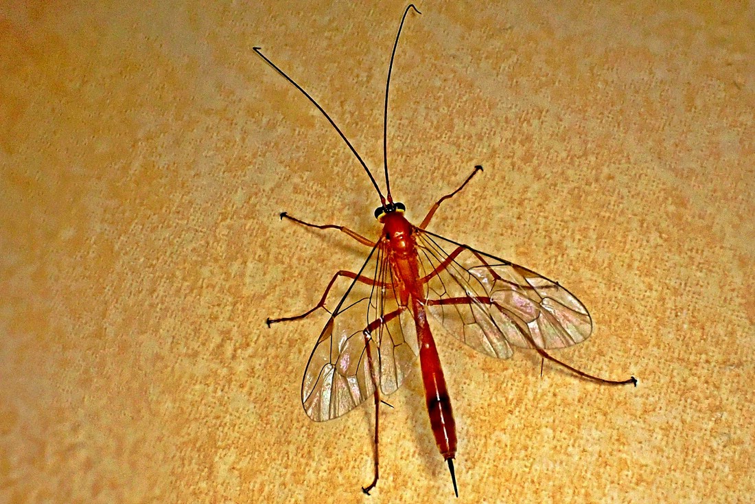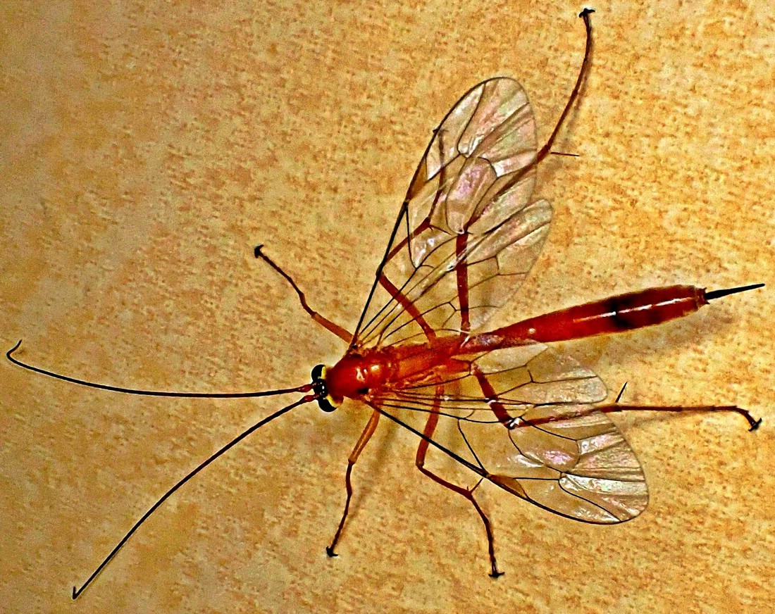 Beginnen möchte ich mit einer herrlich gefärbten Schlupfwespe, die eines Tages an der Küchentapete saß.