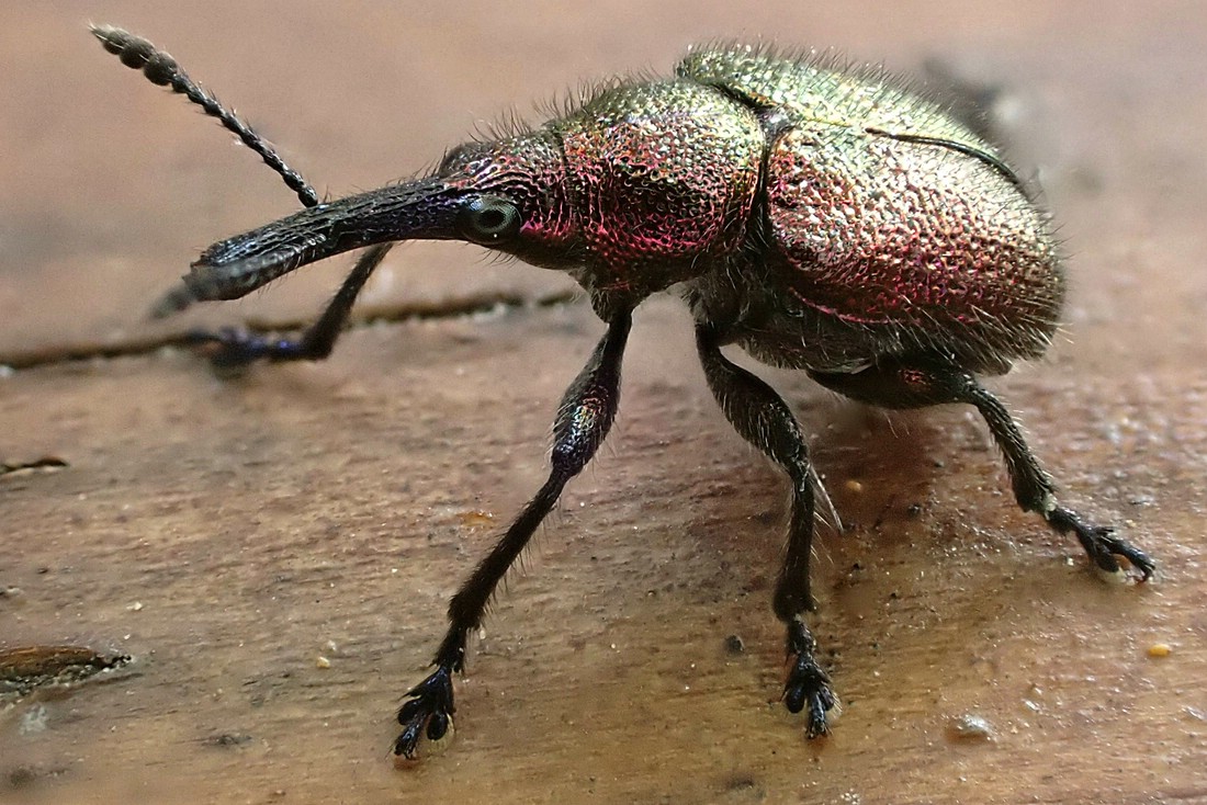 Mit ca. 5 mm nur wenig größer ist der Kupferrote Pflaumenstecher (Involvulus cupreus).