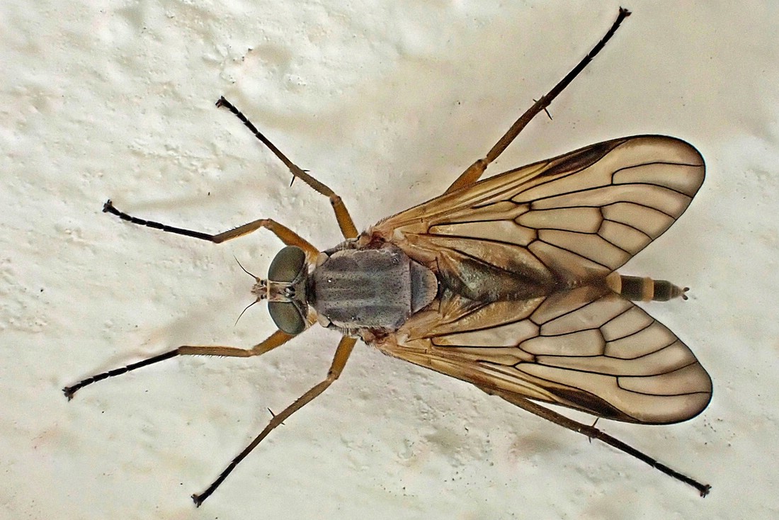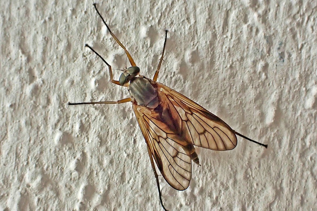 Am Putz neben unserer Haustür entdeckte ich diesen filigranen Hautflügler. Schwarzfüßige Schnepfenfliege (Rhagio vitripennis).
