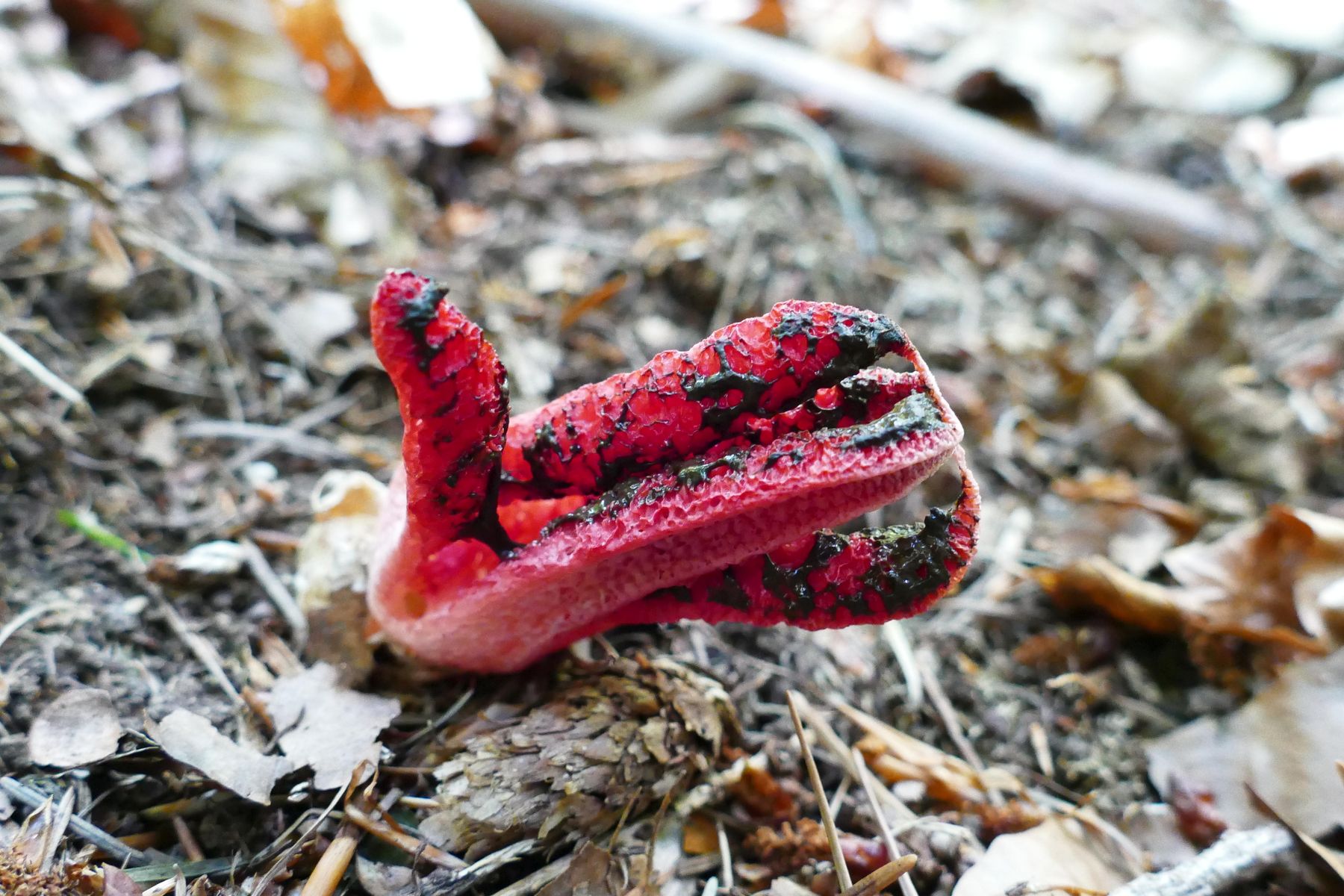 Also nochmal raus in den Wald, Ehefrau als Augenpaarverstärker dabei - nicht zuletzt auch, um den Tintenfischpilz in geöffnetem Zustand zu sehen.
