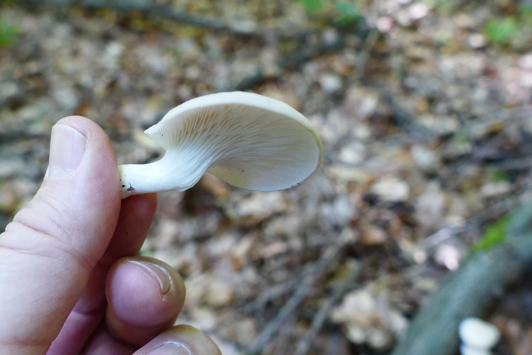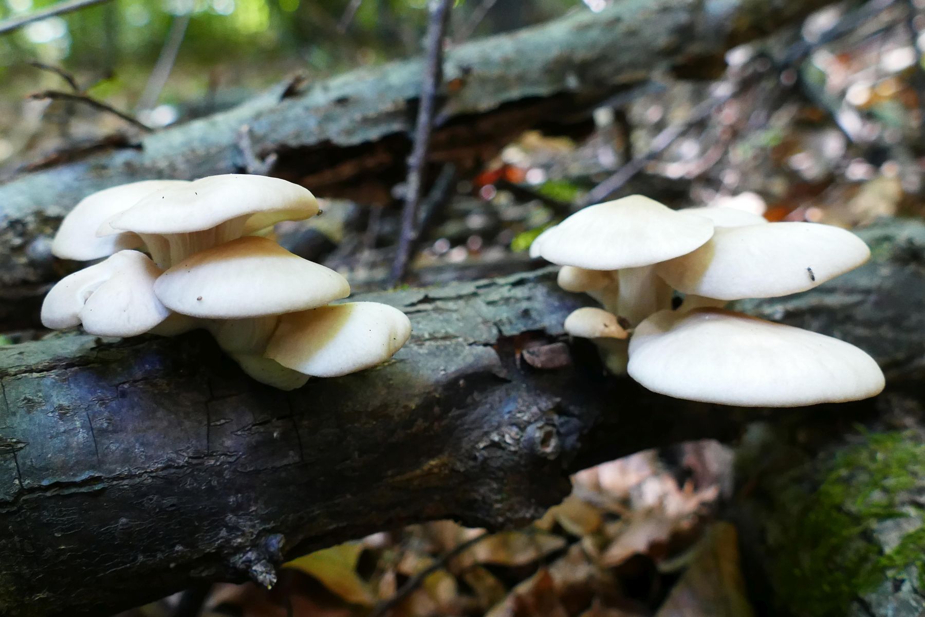 Ein ganzes Stück weiter, an Totholz, weiße Lungenseitlinge