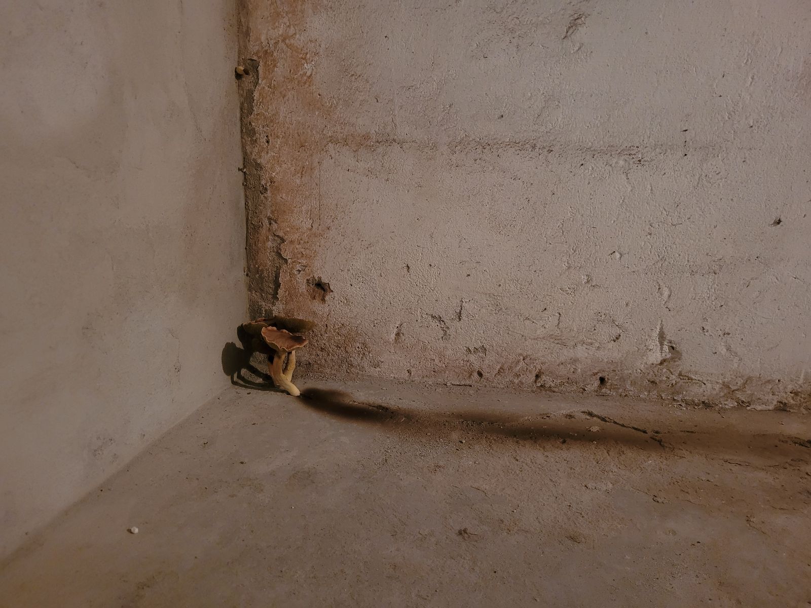 Ich meine im Boden auch einen "Riss" oder soetwas feststellen zu können, an der Stelle wo die Pilze entstanden sind und nehme an, dass das die Verbindung nach draußen sein könnte.
