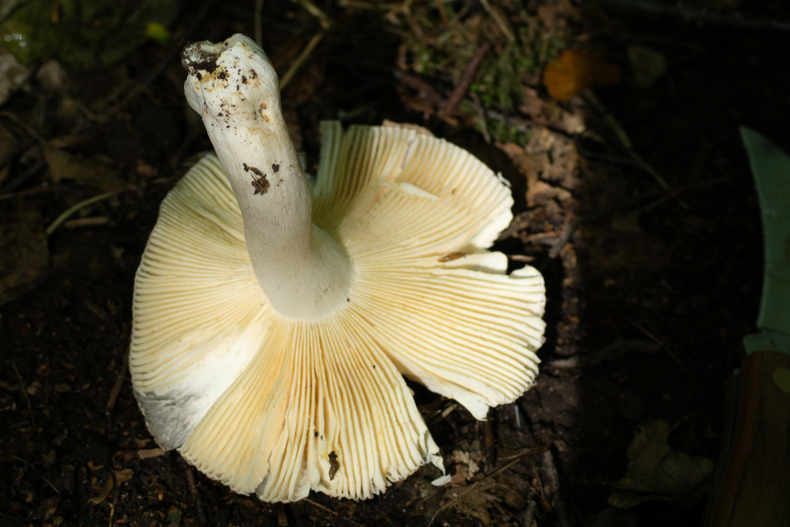 Ich bin gespannt auf die Sporenpulverfarbe. An R.heterophylla glaube ich nicht, da die Lamellen (zu erwartende Sporenpulverfarbe) ziemlich ocker bei deinem adulten Exemplar sind. Wenn du nicht warten willst kannst du dir die Huthaut anschauen und nach Crins/Rosshaaren suchen um Speisetäublinge auszuschließen bzw. zu bestätigen - ganz ohne Sporen und Eisensulfat.