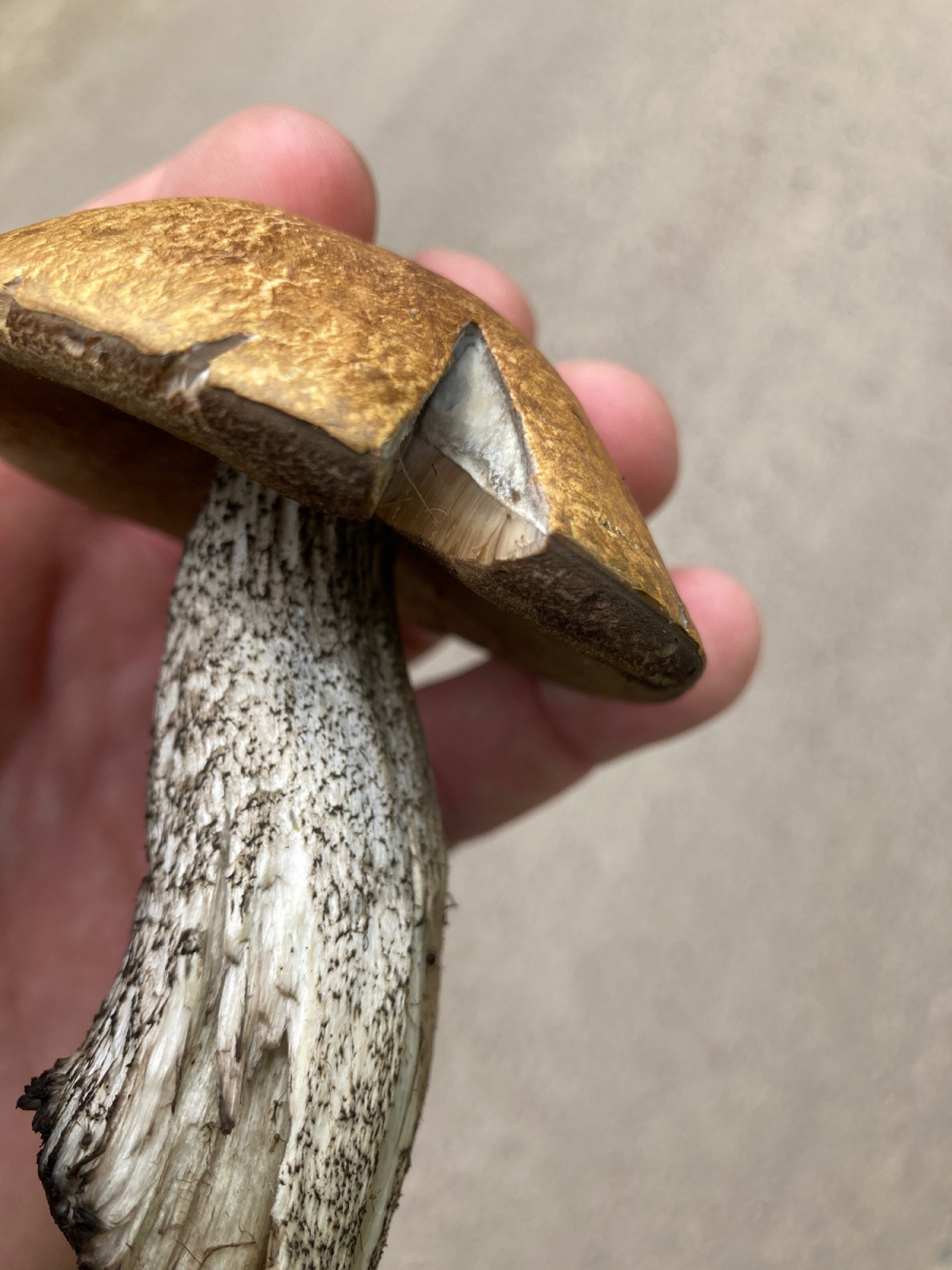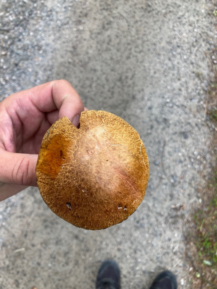 vorhin habe ich in Mittelschweden in einem Nadel- Birkenwäldchen folgenden Pilz gefunden. Die bläuliche später schwarze Verfärbung an der Schnittstelle verunsichert mich. Weiß jemand was das für ein Pilz ist? Hutdurchmesser ca. 9 cm.