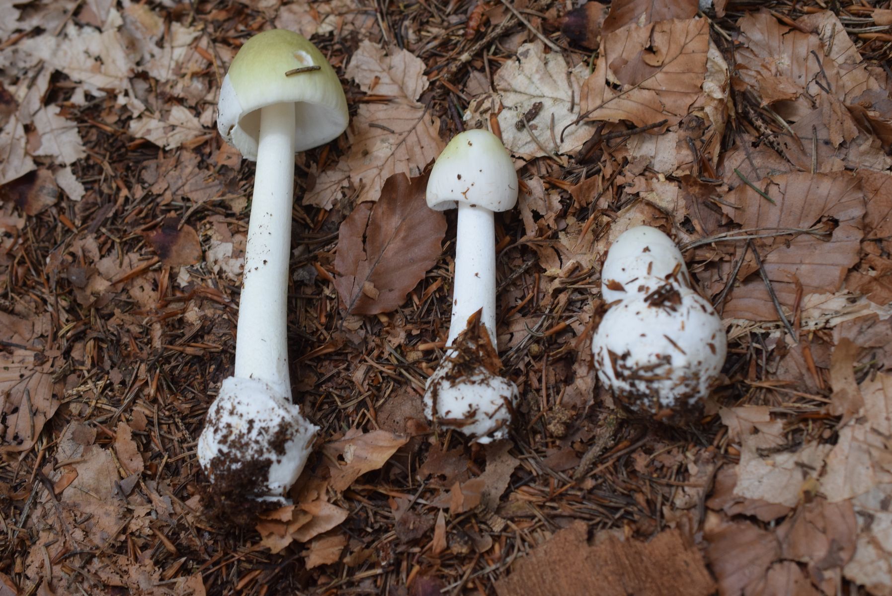vermute, dass du diese Kollektion in deiner Heimat aufgesammelt und fotografiert hast. Tolle Aufnahmen, die eine Bestimmung auf A. phalloides zulassen. Mal mit Ring, mal ohne, mal mit genattertem Stiel, mal ohne. Die verräterische Scheide aber ist omnipräsent. Die Huthaut müsste bei deinen Funden abziehbar gewesen sein, in Form von Tortenstückchen. Waren sie es?