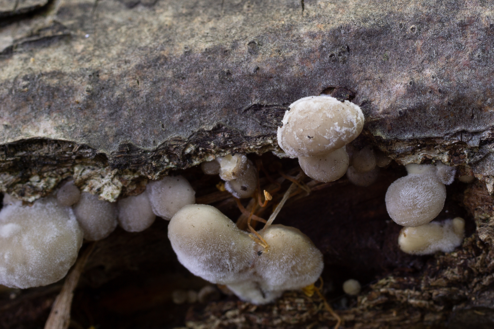 An dem unteren kleben übrigens noch kleinere orangefarbene Pilze (auch drum herum zu sehen), die mir im Fled gar nicht aufgefallen sind.