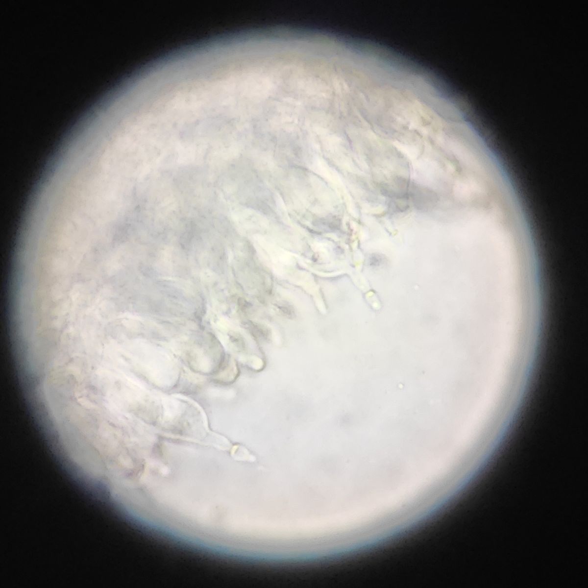 Wäre kein Problem die über die Basidien zu trennen, aber ich finde keine gut sichtbare Basidie und bin mir daher leider nicht sicher ob die Basidien 2 oder 4-sporig sind und mein Material ist mehr oder weniger aufgebraucht...