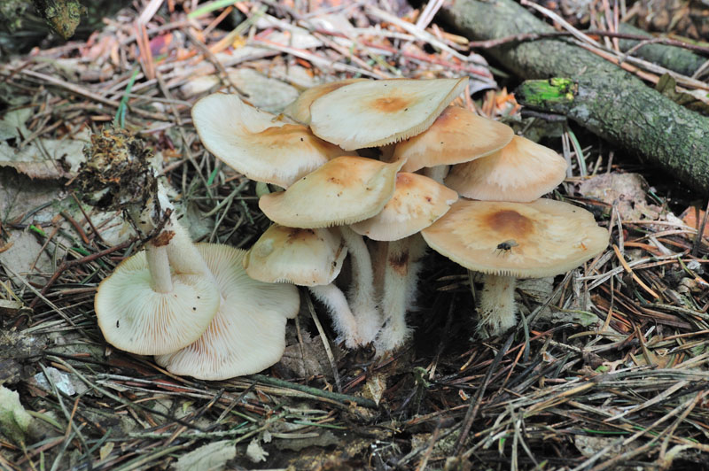 heute wollte ich mairitterlinge suchen, habe aber keine gefunden. dafür aber diese hier. nur weiß ich nicht, was es ist. standort zwischen jungen buchen. ganz in der nähe standen aber auch fichten und kiefern. die pilze wuchsen in kleinen gruppen, aber nicht in hexenringen. die hüte waren teilweise hygrophan, ähnlich wie beim stockschwämmchen. der geruch war unappetittlich und unangenehm so, dass sich die frage der essbarkeit nicht stellt.