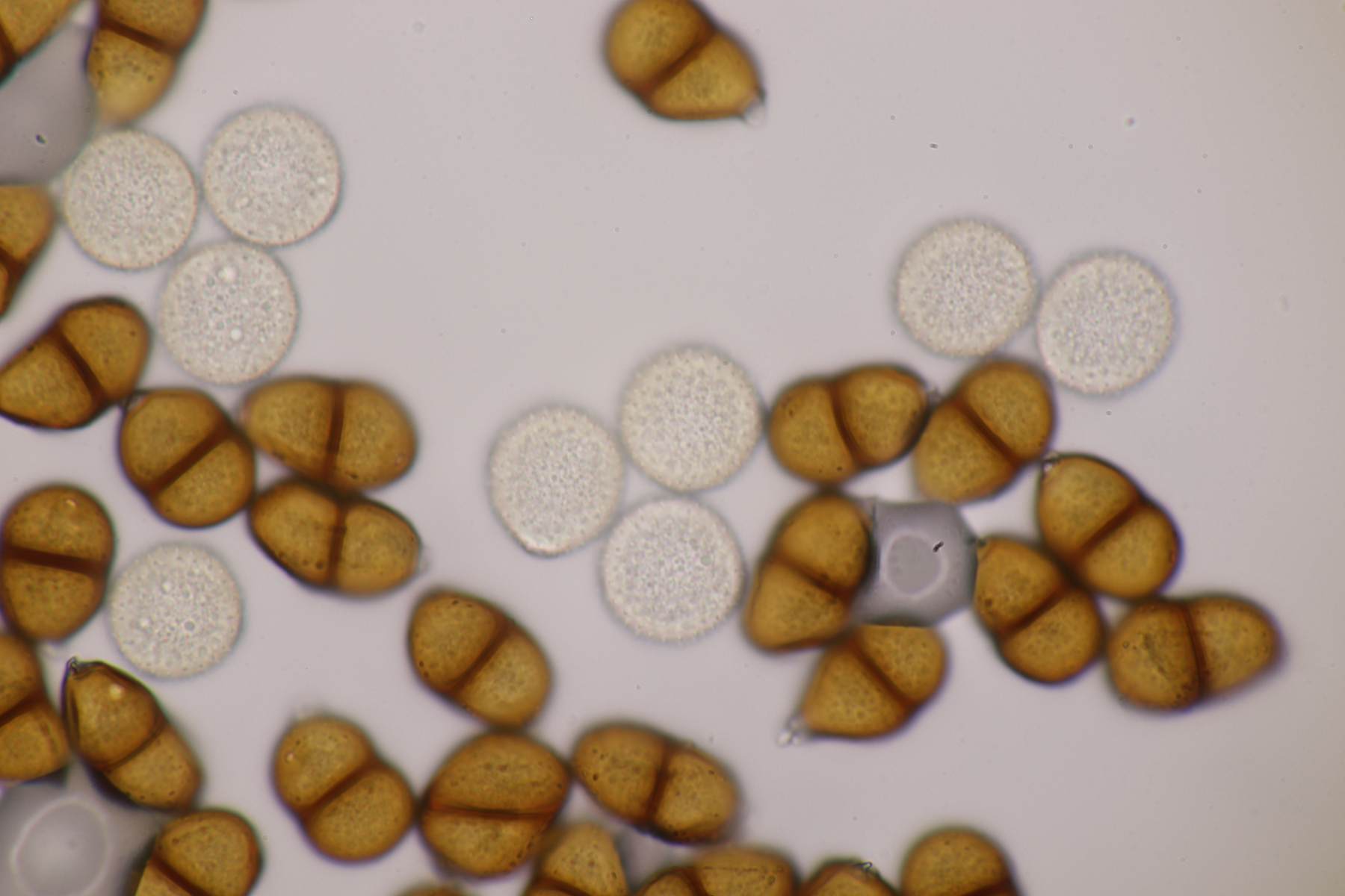 2. Ein Rostpilz an Orchidee findet man auch nicht alle Tage. Hier waren leider nur Spermogonien vorhanden, so daß wir uns nicht zwischen Melampsora repentis und Puccinia sessilis entscheiden konnten, zumal es Salix repens als potentiellen Wechselpartner vor Ort gab.