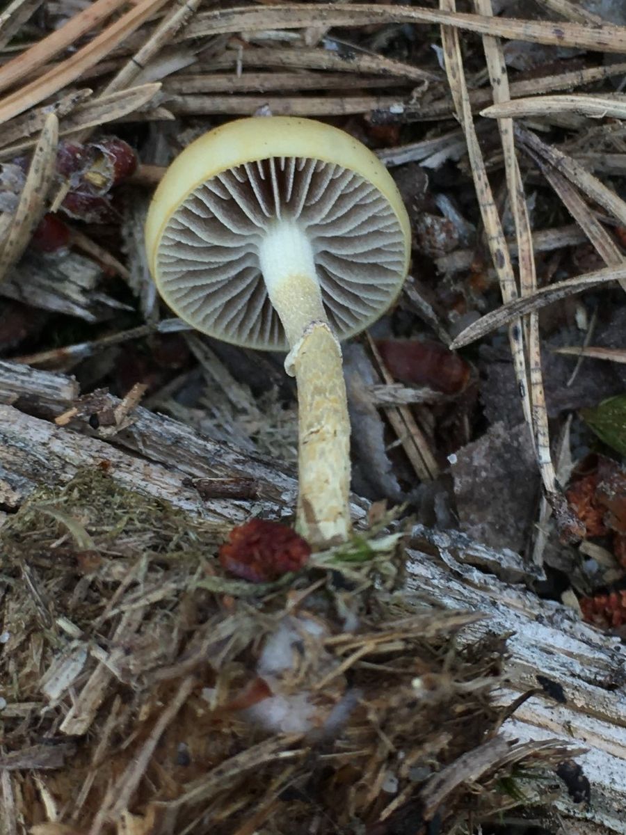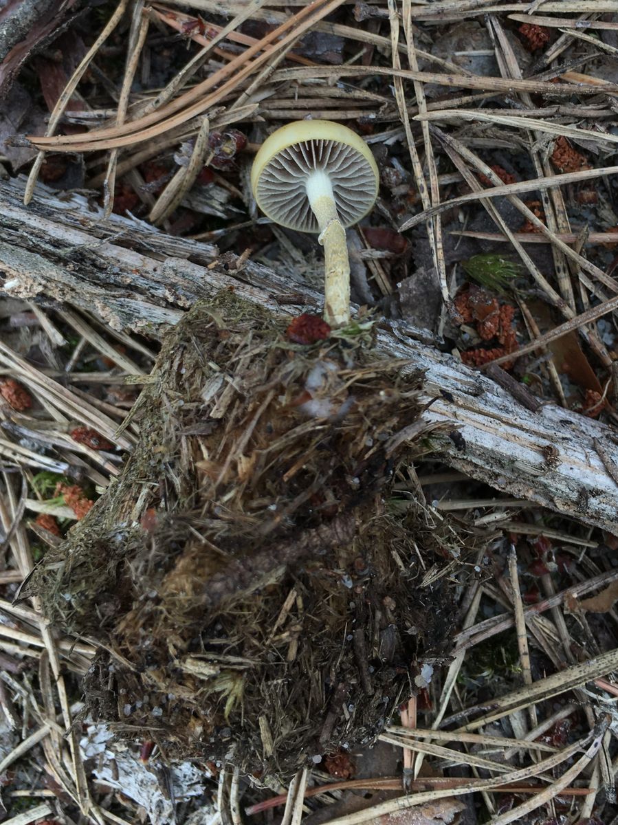 Aber zum Glück ist zumindest Sch... anfangs feucht und so kann ich euch einen echten Pilz sogar mit Hut (!) präsentieren. Ich dachte es wär bereits makroskopisch der halbkugelige Träuschling, den ich letztes Jahr schon mal auf Rossknödeln hatte und ließ in im Wald. (Ok nicht ganz richtig, ich hatte es vor ihn mitzunehmen, natürlich, den einzigen Pilz seit Monaten lass... aber dann musste mein Kleiner plötzlich seine Notdurft verrichten und dann hab ich ihn doch liegen gelassen) Nun ja zu Hause bei der Recherche kamen wie so oft dann doch Zweifel. Es kommen noch ein paar andere aus der Gegend wie Protostr. dorsipora infrage. Eigentlich hätte ichs damit auf sich beruhen lassen aber vielleicht freut sich jemand der in einer ähnlichen Wüste wohnt ja auch über einen zwar einzelnen- aber doch richtigen Pilz, auch ohne richtigen Namen. (Außer nobi_† kann ihn doch an irgendeinem Detail festnageln? mir fehlt da die Erfahrung)