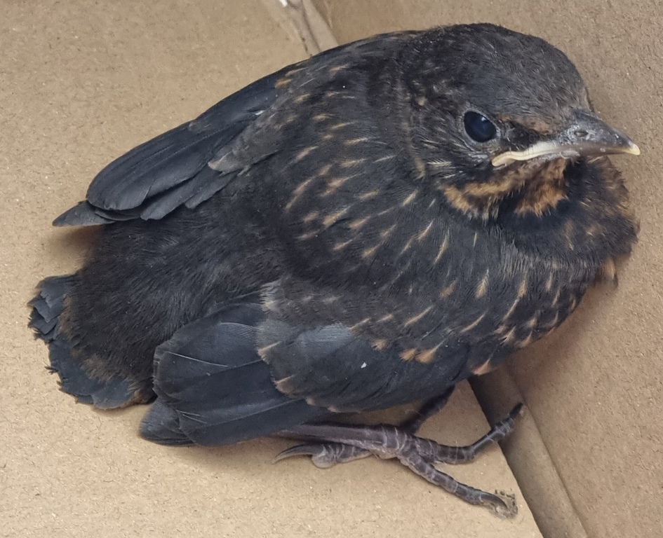 Den/die kleine(n) Kerl/in habe ich heute bei mir vor der Tür entdeckt bei dem Versuch sich unsichtbar zu machen, scheint kurz vor flügge zu sein.