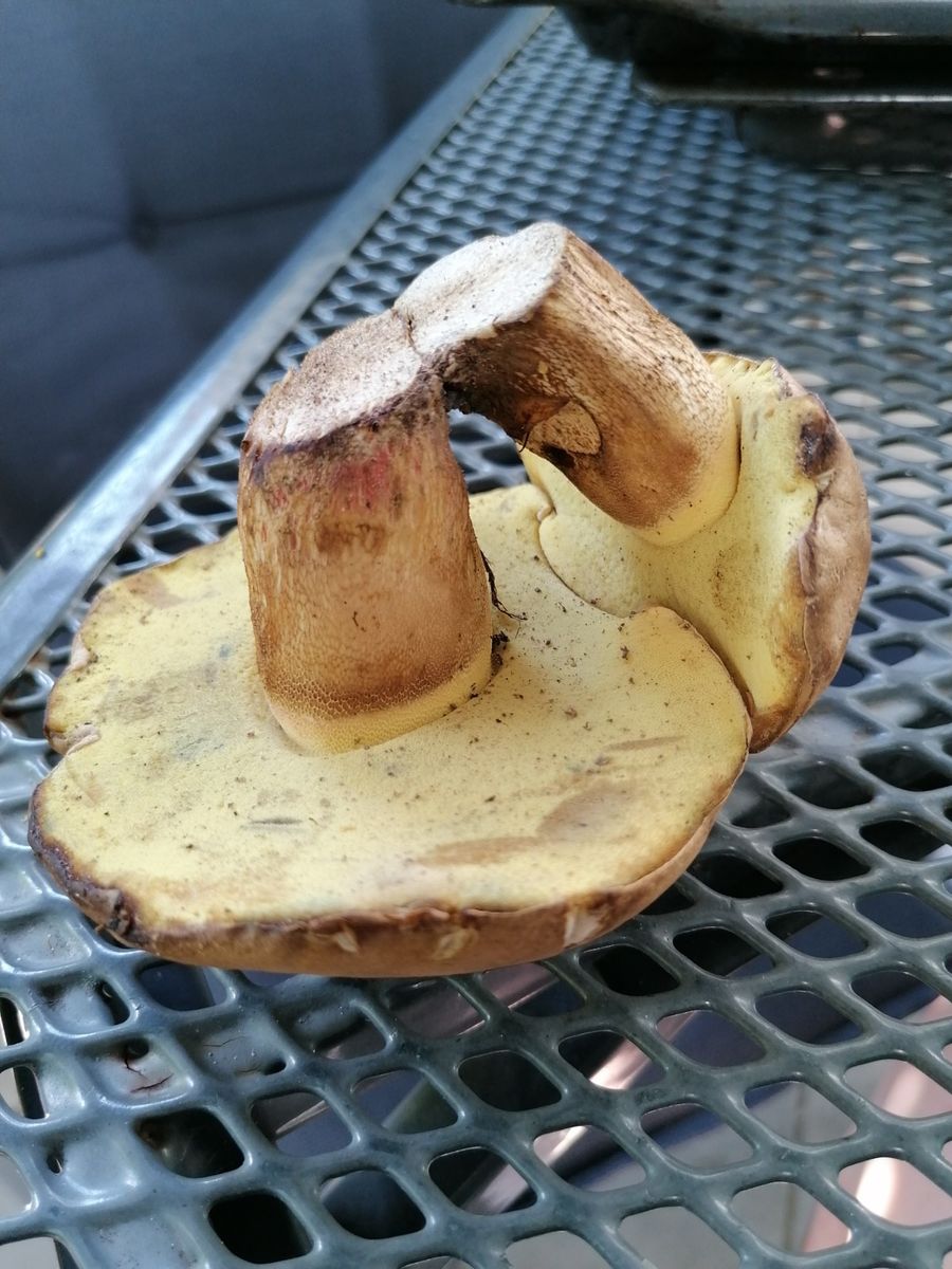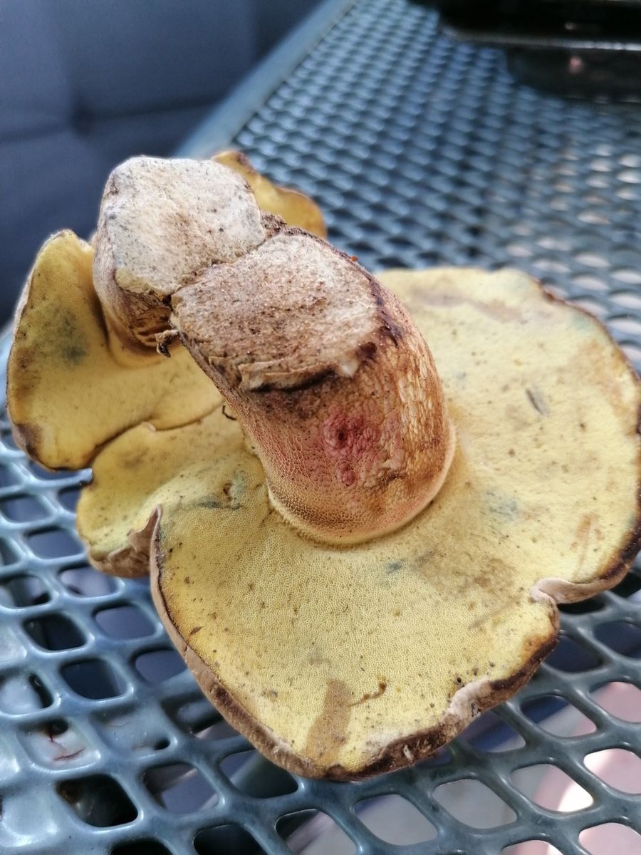 Dieses Wochenende fand ich im vorderen Odenwald im Nadelwaldbetonten Mischwald trotz der Trockenheit und bei ansonstem weitestgehend fehlendem Pilzbestand einige Röhrlinge, die ich nicht eindeutig identifizieren kann.