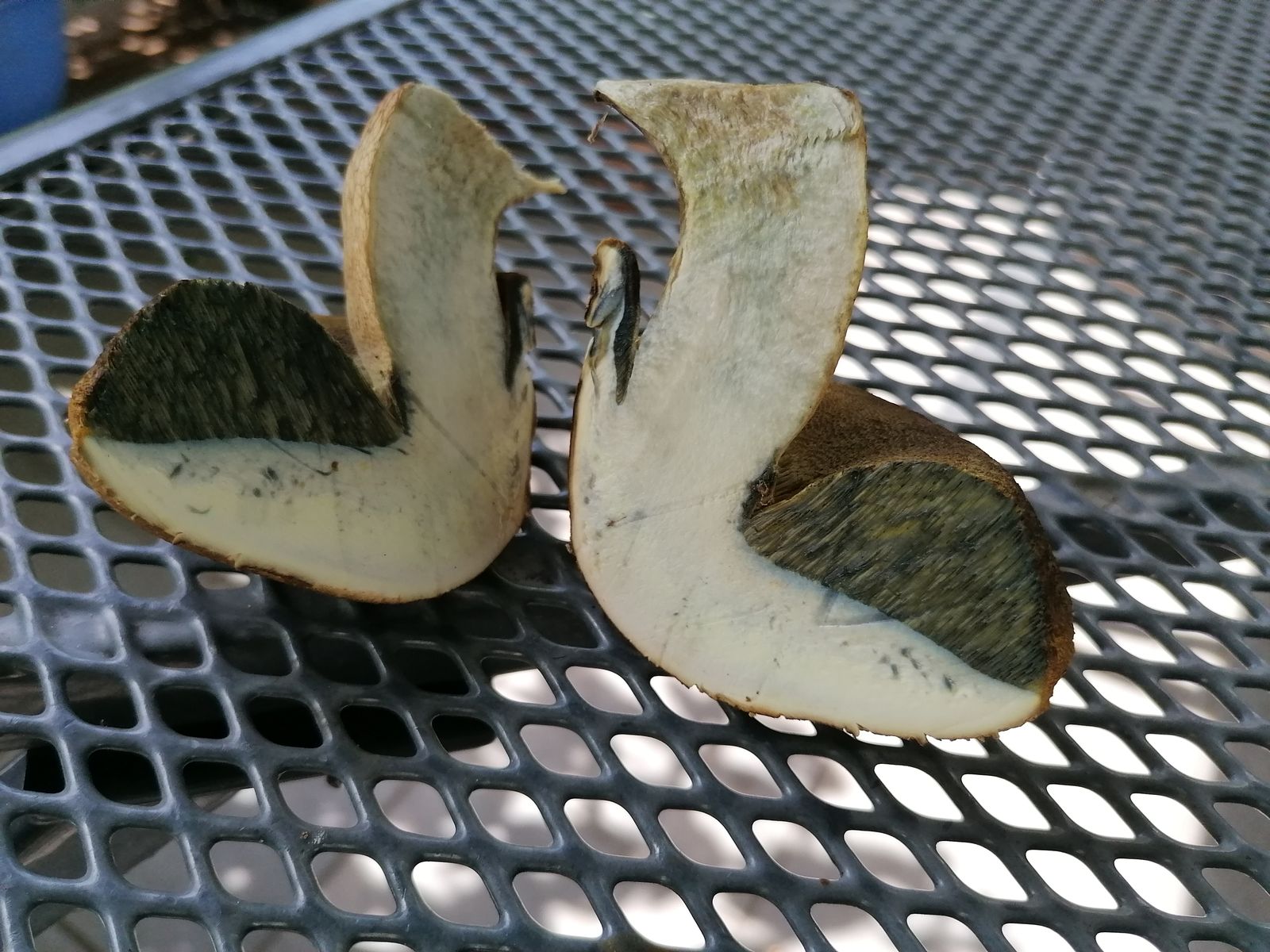 Ohne die leichte Bläuung hätte ich vielleicht auf Steinpilz getippt. Für Hexen blauen sie zu wenig. Ich habe ein wenig ??? in den Augen und traue mich nicht, sie heute auf den Grill zu werfen. Was meint Ihr als Experten dazu?