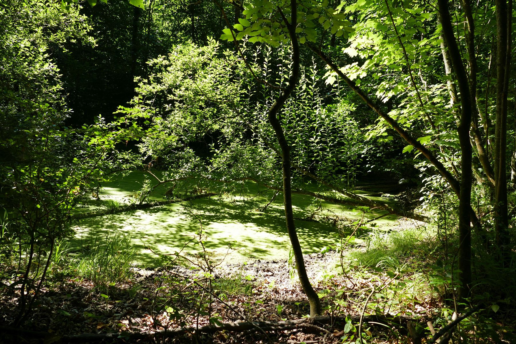 Bild 1 Idyllisches Waldstück mit aufgestautem, entenbegrütztem Bach