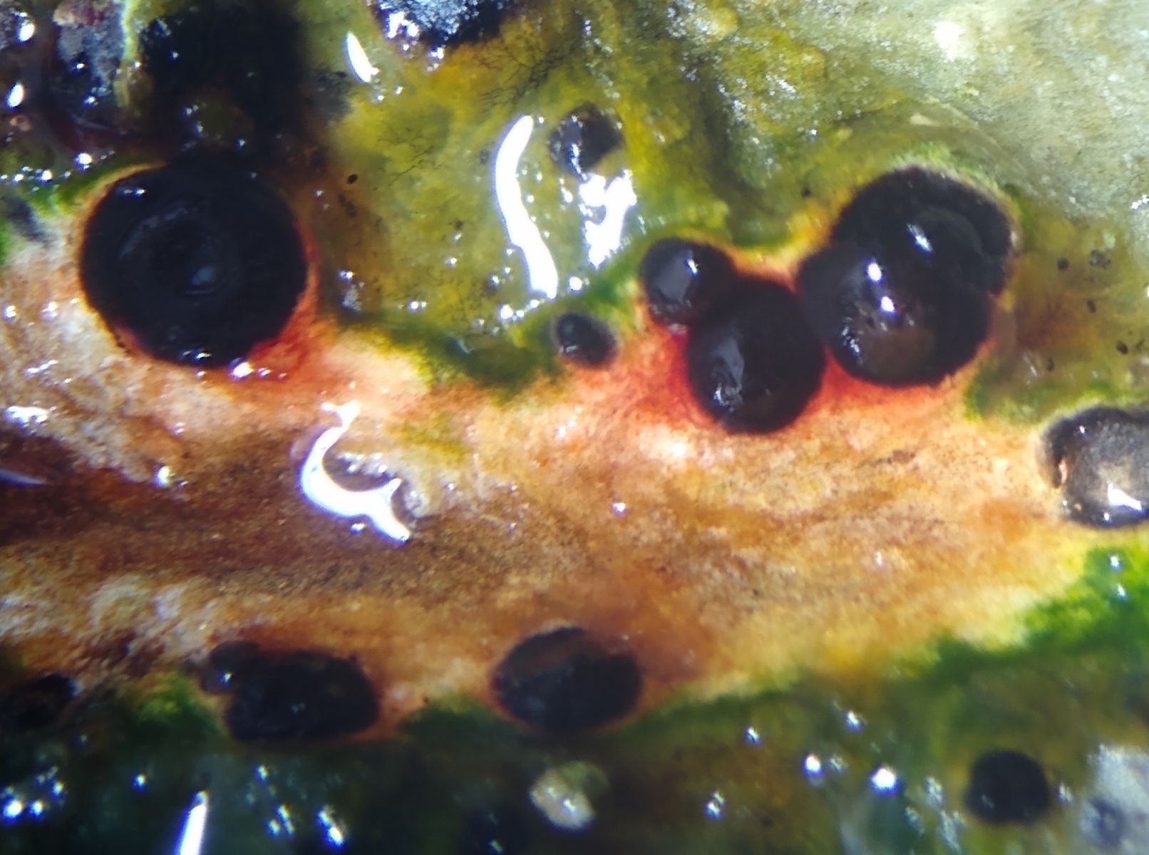 Die Perithecien sind sehr groß, bis über 1mm (sichtbarer) Durchmesser.