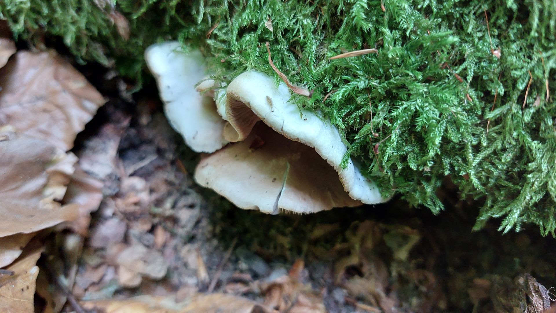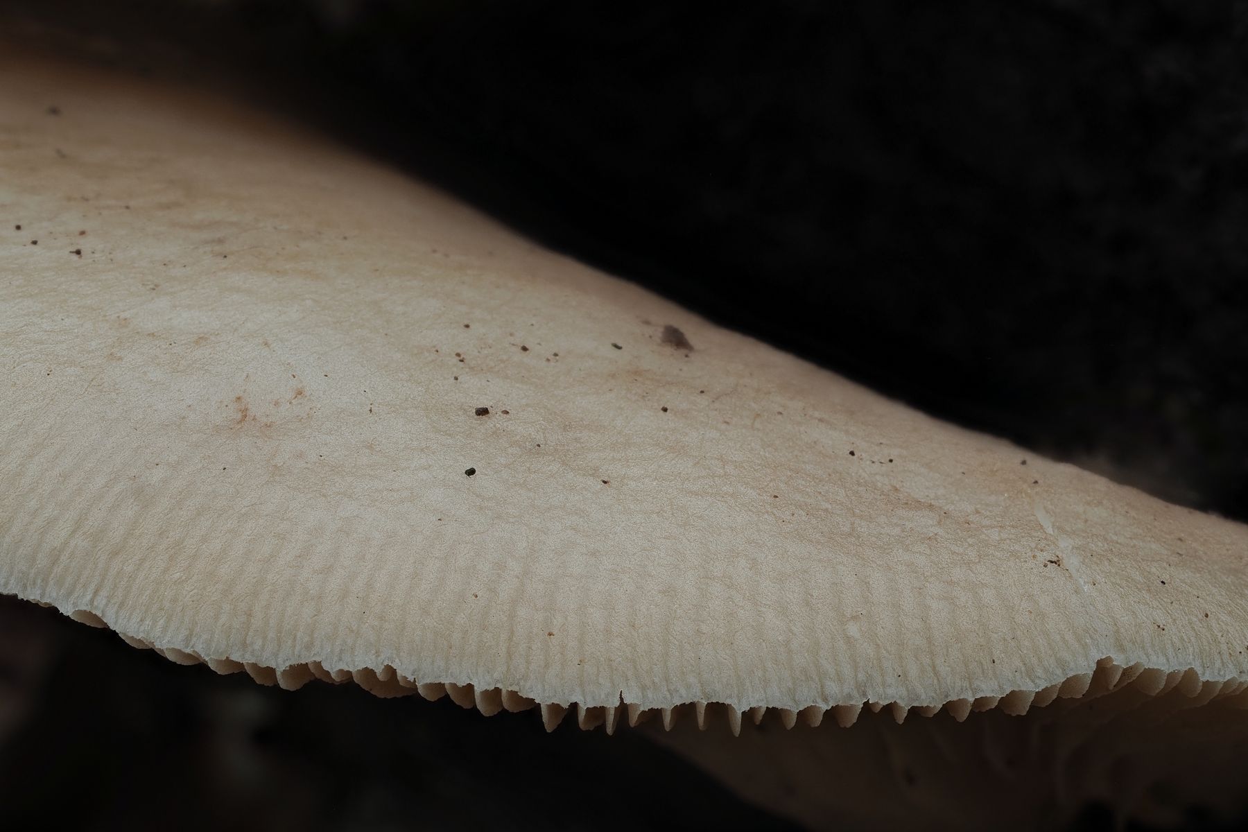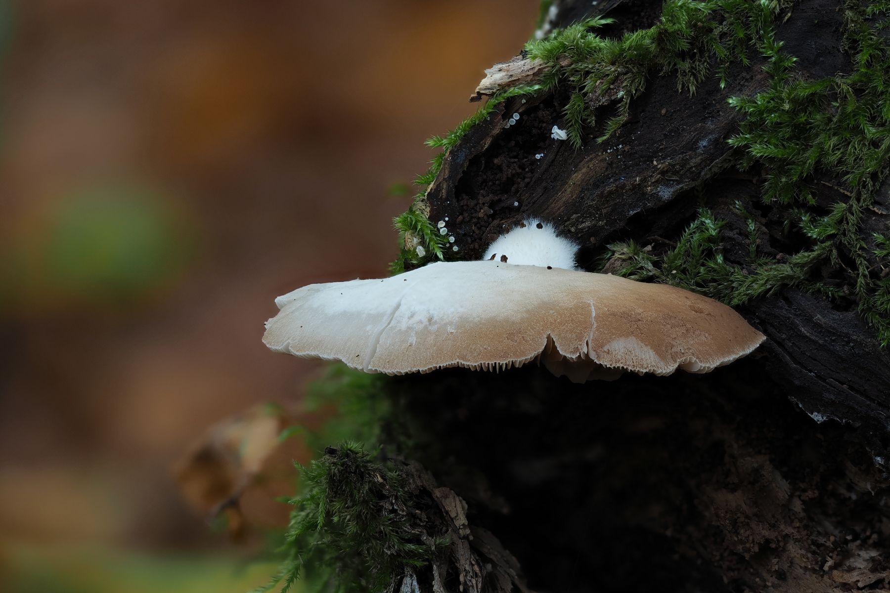 Deshalb bin ich irgendwo bei Crepidotus gelandet, weil es da auch dunkle Sporen gibt. Evtl. Crepidotus mollis?