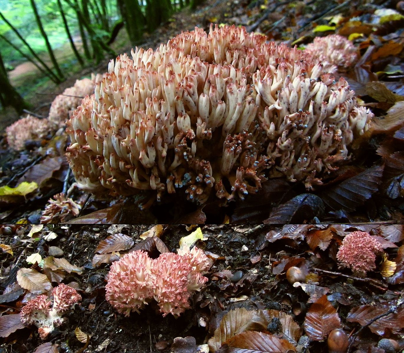 schnell drüber geschaut ist's weder Ramaria rupripermannens noch R. botrtis. Die haben anders geformte Sporen.