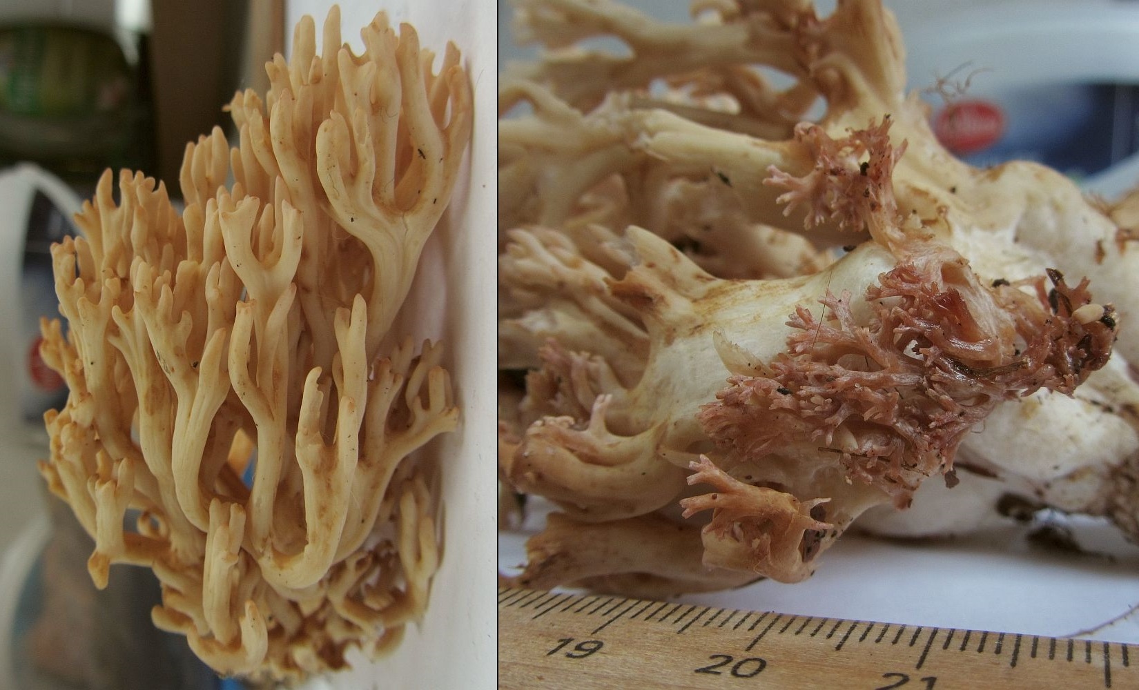 Das war im Wald auch erstmal mein Eindruck. Mikroskopisch kommt aber keine andere Ramaria in Frage. Die Fruchtkörper sind halt alt, voll ausgewachsen und ausgeblasst. An den kleinen Seitenästen kann man die rote Farbe noch erahnen, ansonsten fehlt die Färbung der Astspitzen. Der langgliedrige Habitus kann zudem dadurch beeinflusst sein, daß die Fruchtkörper in hohem Gras gebildet wurden.