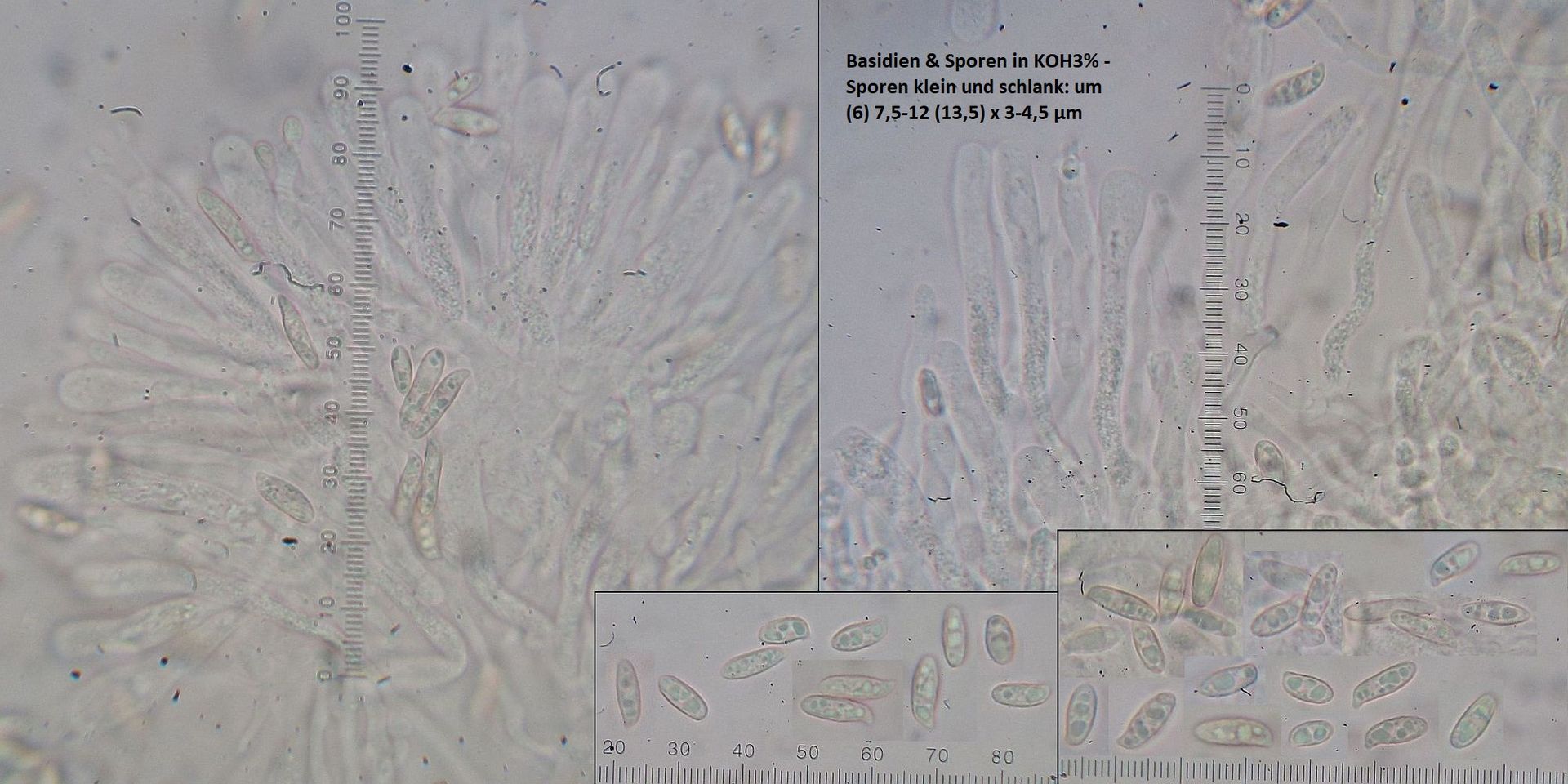 danke für deine Hinweise. Der mitgenommene und inzwischen getrocknete Fk scheint in der Tat noch ned wirklich reif zu sein, da die Sporen auch für R. rubripermanens noch recht kurz ausfallen. Einzelne bis 12 my hab ich immerhin gefunden. BWblau hab ich nicht da, und in Melzer kann ich das Ornament leider nicht sehen.