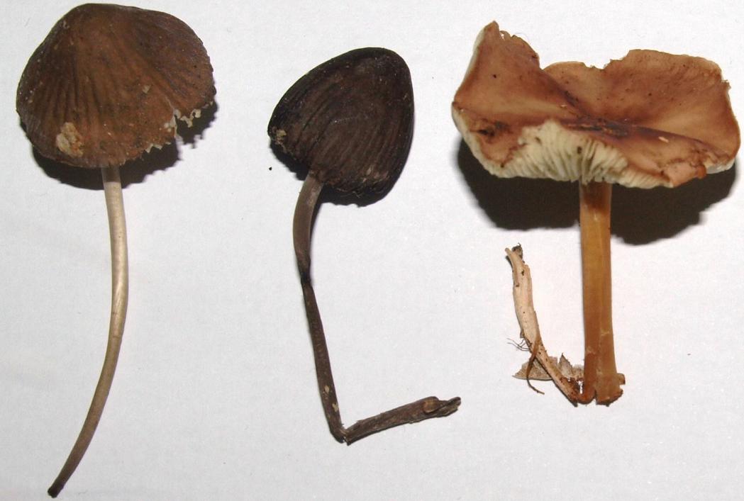 Der rechte könnte in Richtung Gymnopus ocior (Gelbblättriger Blasssporrübling) gehen, der linke ist möglicherweise bei hellen Lamellen eine Mycena (Helmling). Ob der mittlere zum linken gehört ist schwer zu sagen, wenn du nichts dazu schreibst.VG Ingo W