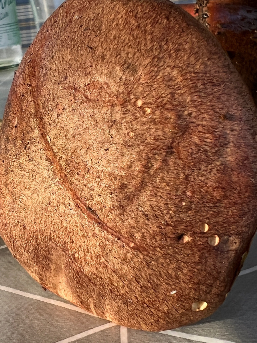 Der Pilz auf den beiden ersten Bildern ist dennoch was Anderes, weil andere Struktur der Hutoberfläche (Struktur ist meistens wichtiger als die Farbe), und zudem nix Netz. Auch nicht in der vergrößerung an der Stielspitze. Ich würde auch dick Pilzchips setzen, daß der null blaut. Für mich wäre Pilz Nr. eins ein Fahler Röhrling (Hemileccinum impolitum).