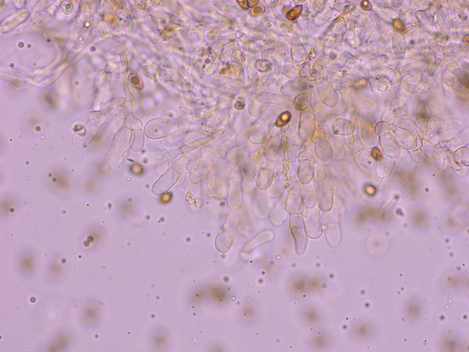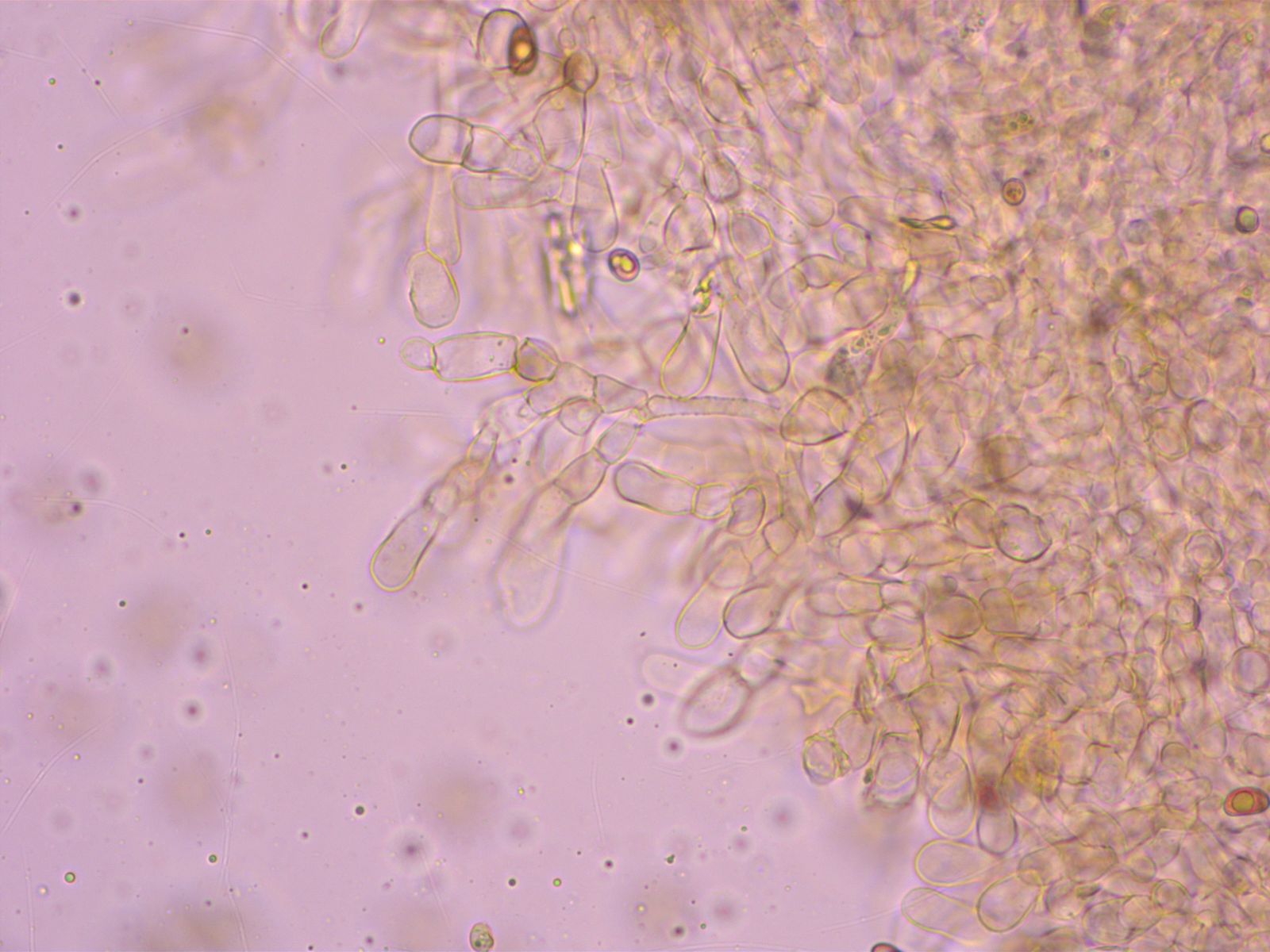 Cheilozystiden sehr stark gegliedert, so dass ich anfangs an M. arthrocystis dachte (aber die ist es sicher nicht, u.a. passen die Sporen nicht).
