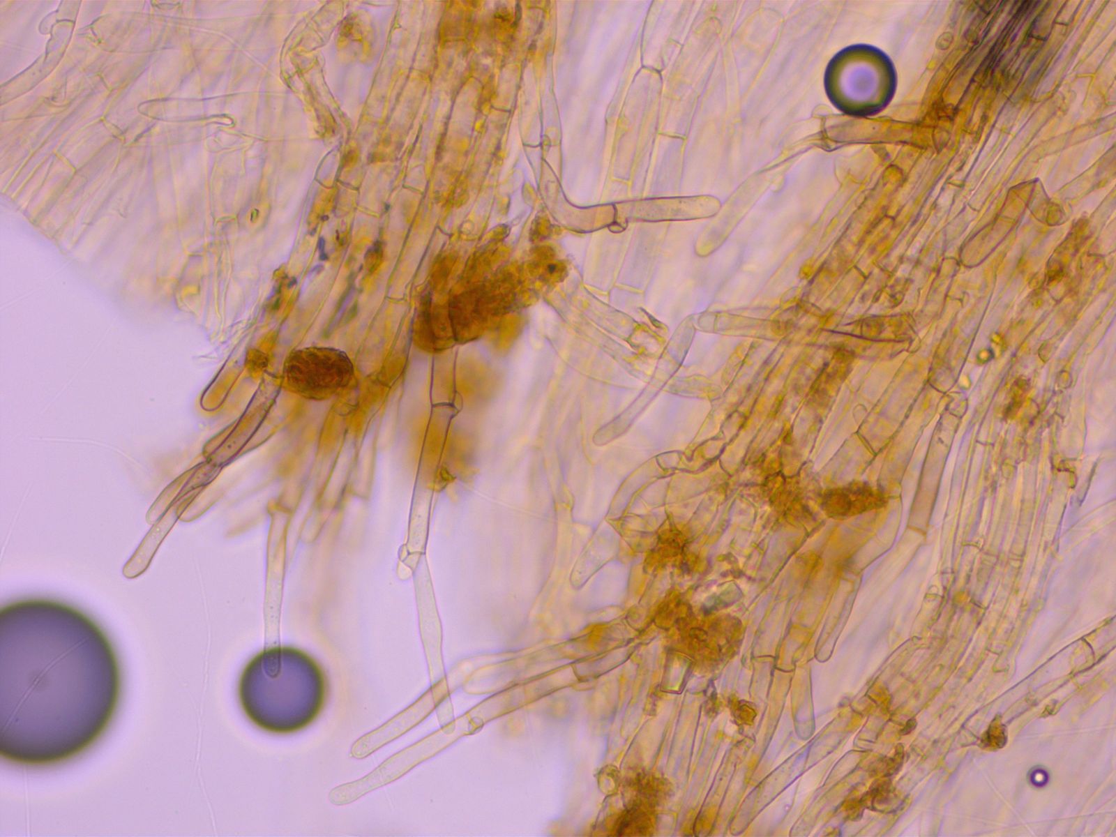 Stiel auch am Apex ohne auffallende Kaulozystiden, nur mit zylindrischen Hyphenenden.