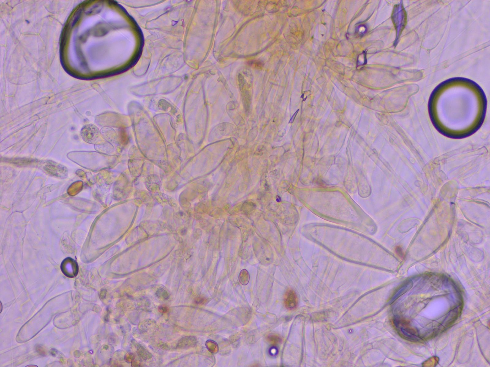Pleurozystiden viel regelmässiger, mit schlankem Stiel und dicken Wänden.