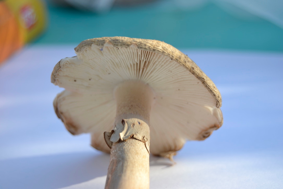 Velum: Helle Gesamtvelumreste auf Hut, Teilvelum als Ring (gerieft!)