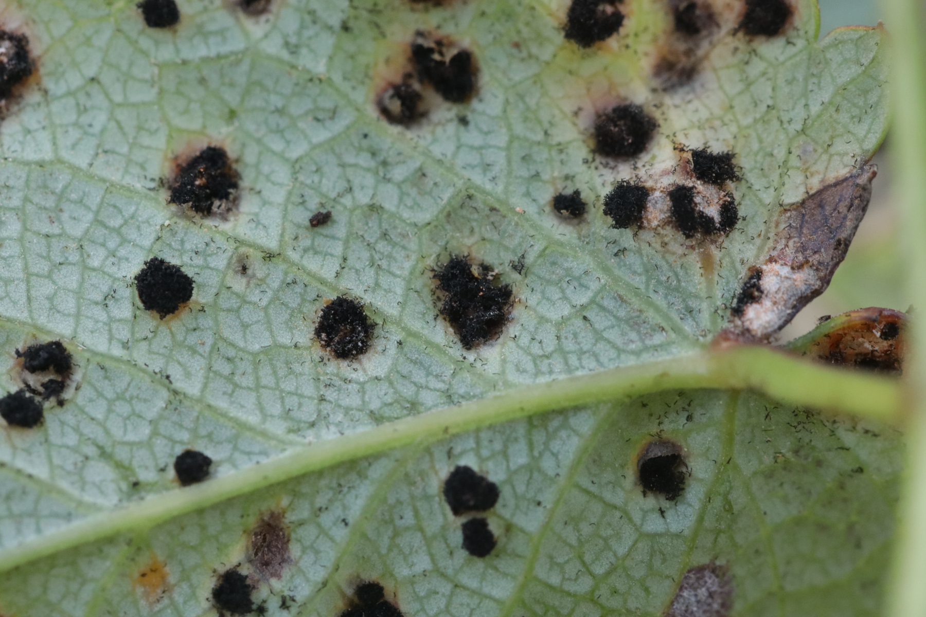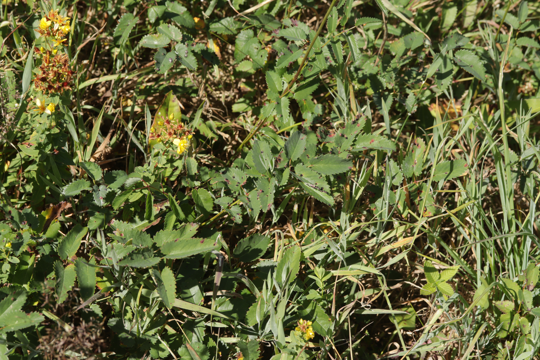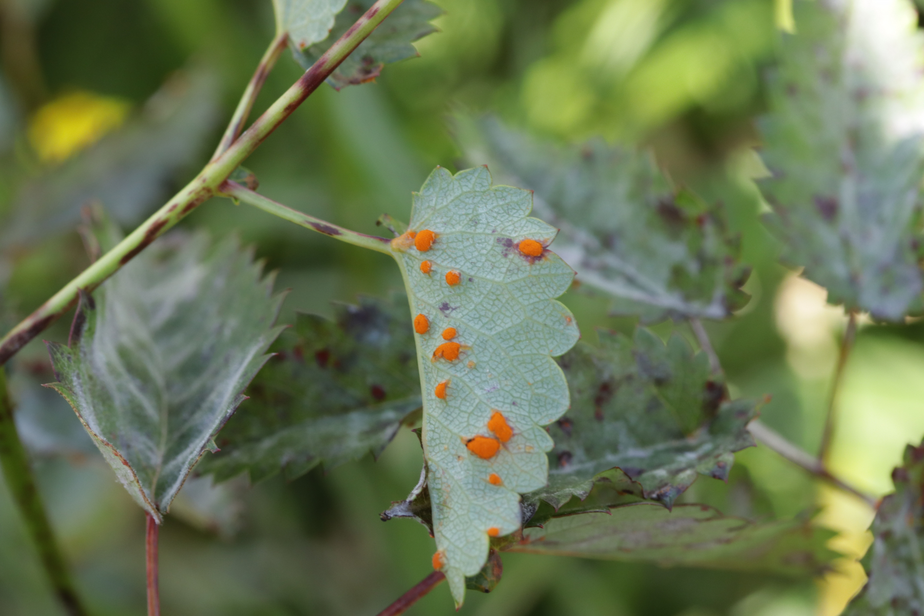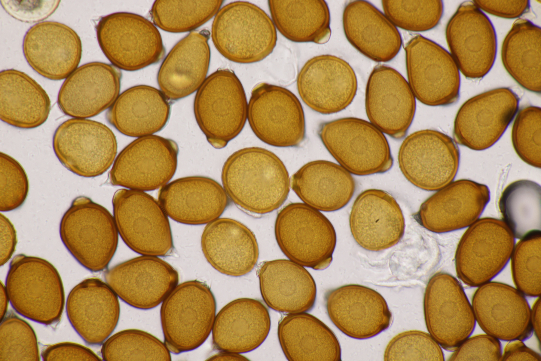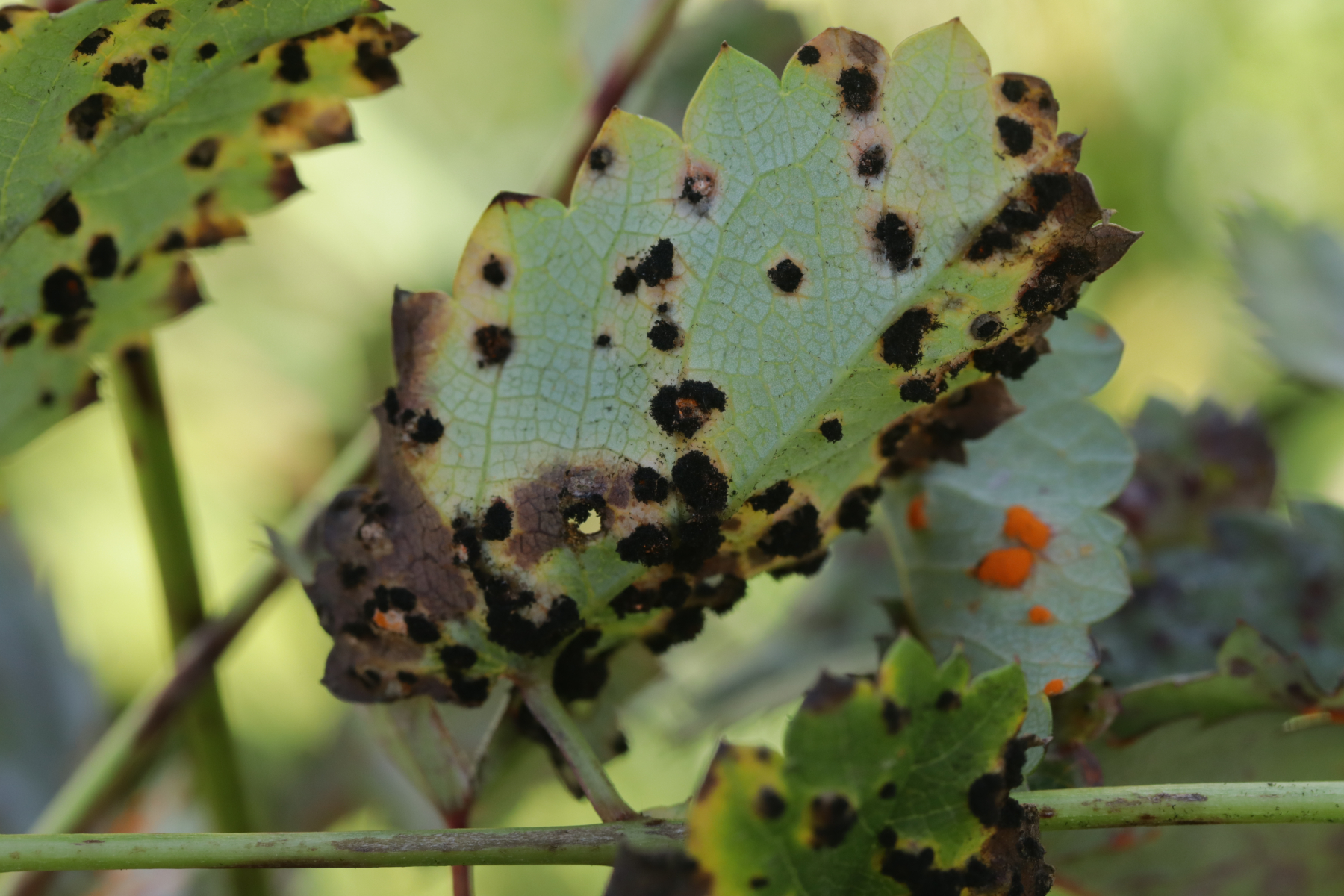 4. Und das Highlight des Tages kurz vor dem Ende der Tour. Ich war schon fast wieder in Winterberg selber, als ich entweder direkt in die Stadt gehen konnte oder erst einen Feldweg entlang. Letztere Option barg allerdings die Gefahr in eine Sackgasse zu laufen (das war dann auch tatsächlich der Fall, aber man konnte zum Glück die Bundesstraße queren und dann auf der anderen Seite Richtung Ort über Feldwege wandern), war allerdings natürlich landschaftlich reizvoller, so daß ich mich für diese Option entschied. Das wurde auch nach 5 Metern direkt belohnt mit Xenodochus carbonarius ex Sanguisorba officinalis. Ich hatte den Pilze ja das erste Mal auf der Kleinpilztagung in Garmisch gefunden, aber hier war er noch mal eine Nummer schöner ausgeprägt und die Teliosporen waren auch noch mal länger. Ganz überraschend kam der Fund allerdings nicht, denn dort in der Gegend ist der Pilz in den späten 60er Jahren mehrfach nachgewiesen worden.