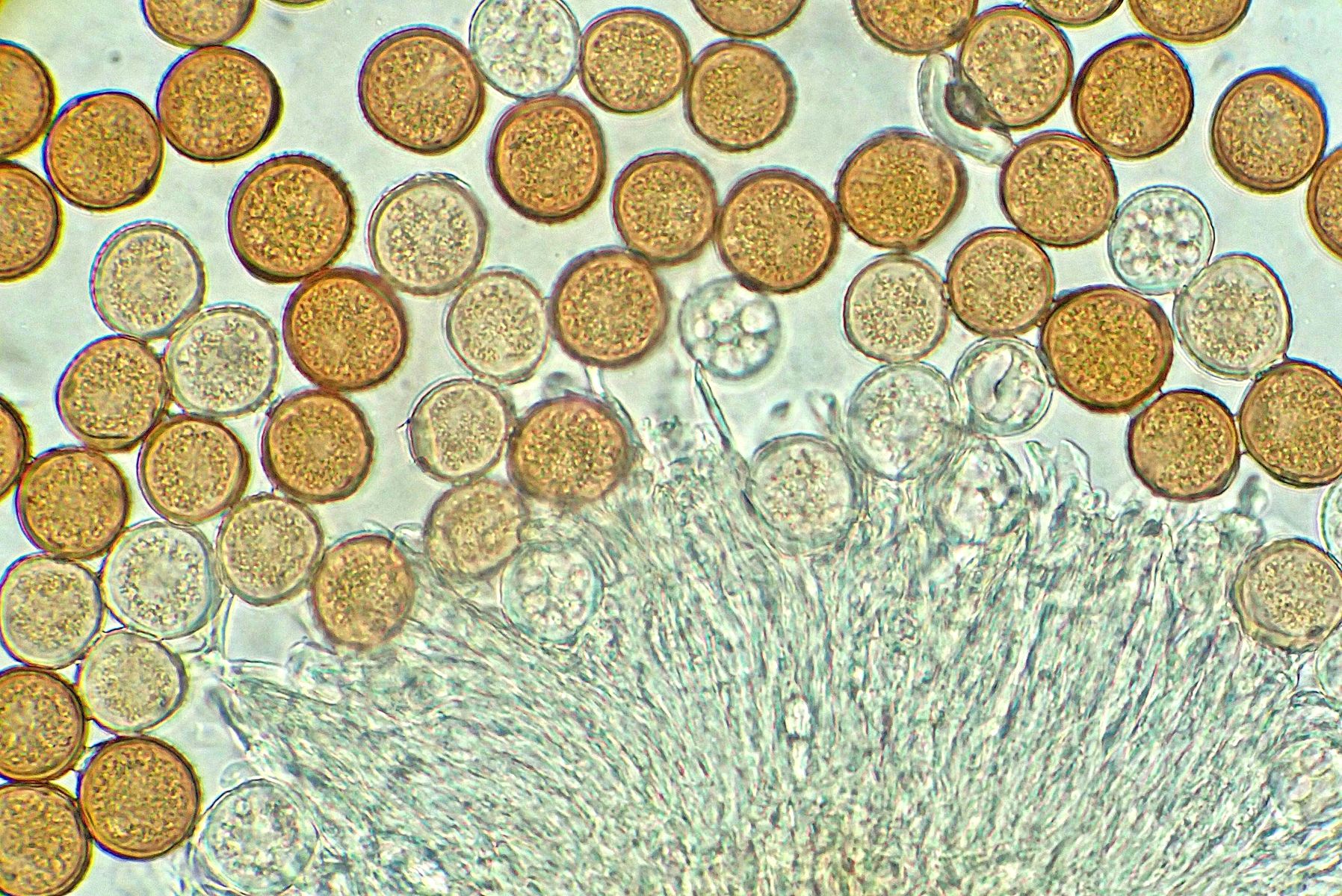 Was mich bei Deinen Mikrofotos etwas irritiert: Die Sporen scheinen da in irgend etwas eingebettet zu sein. Sind die eventuell noch nicht ganz reif? Idealerweise sollte man die Sporen aus einem stäubenden Telium entnehmen.