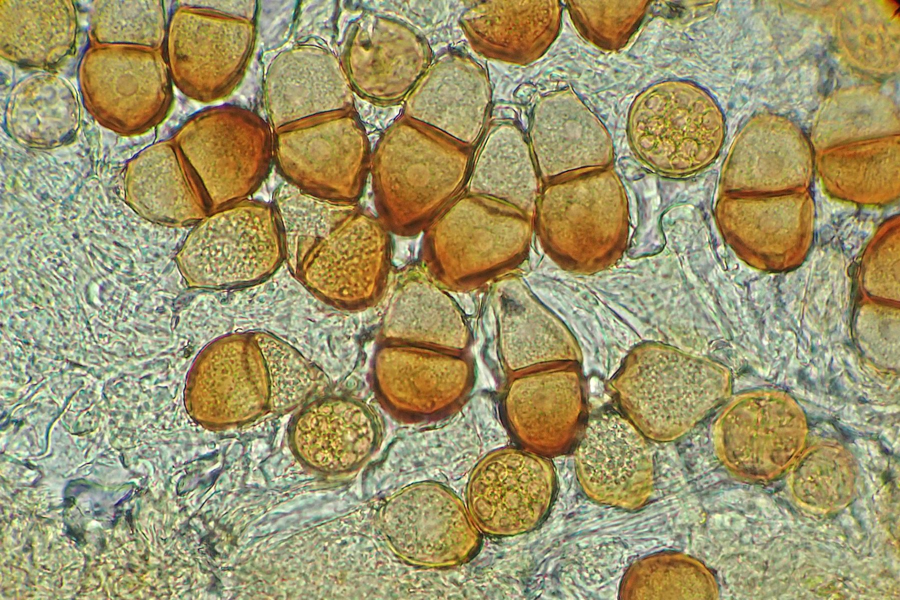 Was mich bei Deinen Mikrofotos etwas irritiert: Die Sporen scheinen da in irgend etwas eingebettet zu sein. Sind die eventuell noch nicht ganz reif? Idealerweise sollte man die Sporen aus einem stäubenden Telium entnehmen.