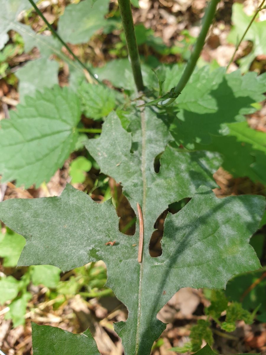 Beim nächsten Pilz bin ich mir nicht sicher, nach Recherche könnte es Podospaera xanthii oder Golovinomyces cichoracearum sein. Ich hoffe den Wirt richtig bestimmt zu haben: Mycelis muralis
