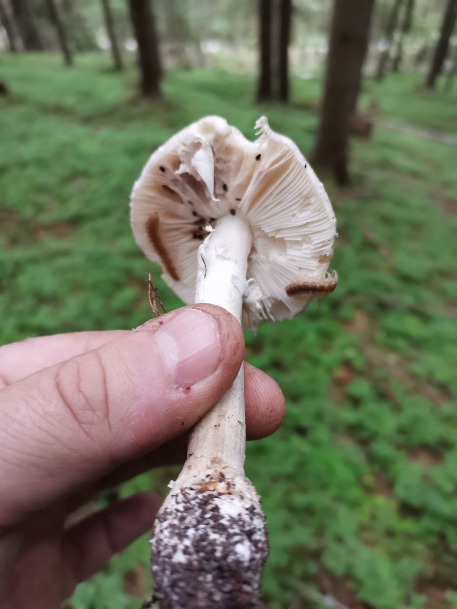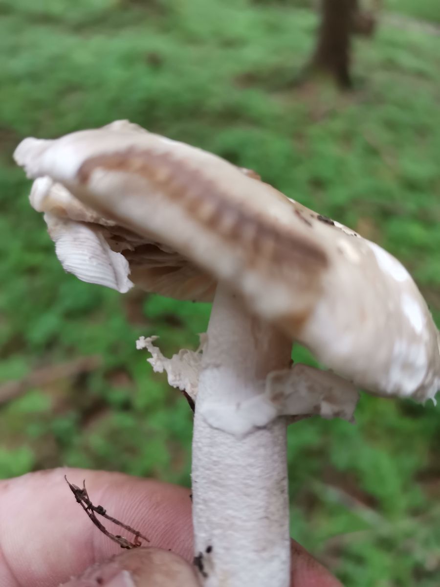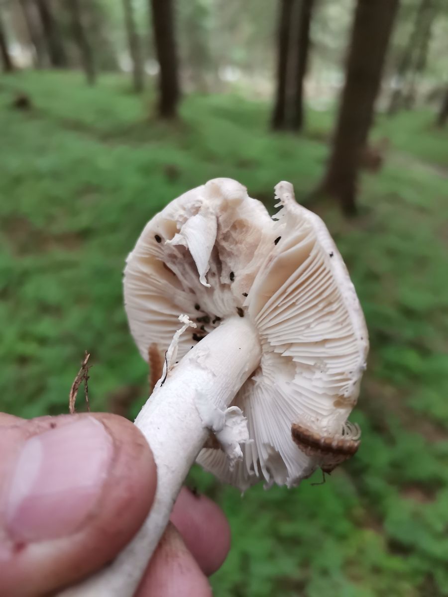 Zwischen die Aufnahmen eines Wulstlings, die eventuell einen Grauen (Amanita excelsa agg.) zeigen könnten, hat sich auch noch die Aufnahme der Unterseite eines Täublings gemischt.