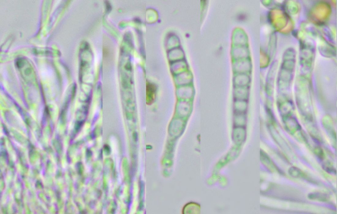 Die Sporenabmessung liegt etwa bei 8x5um.