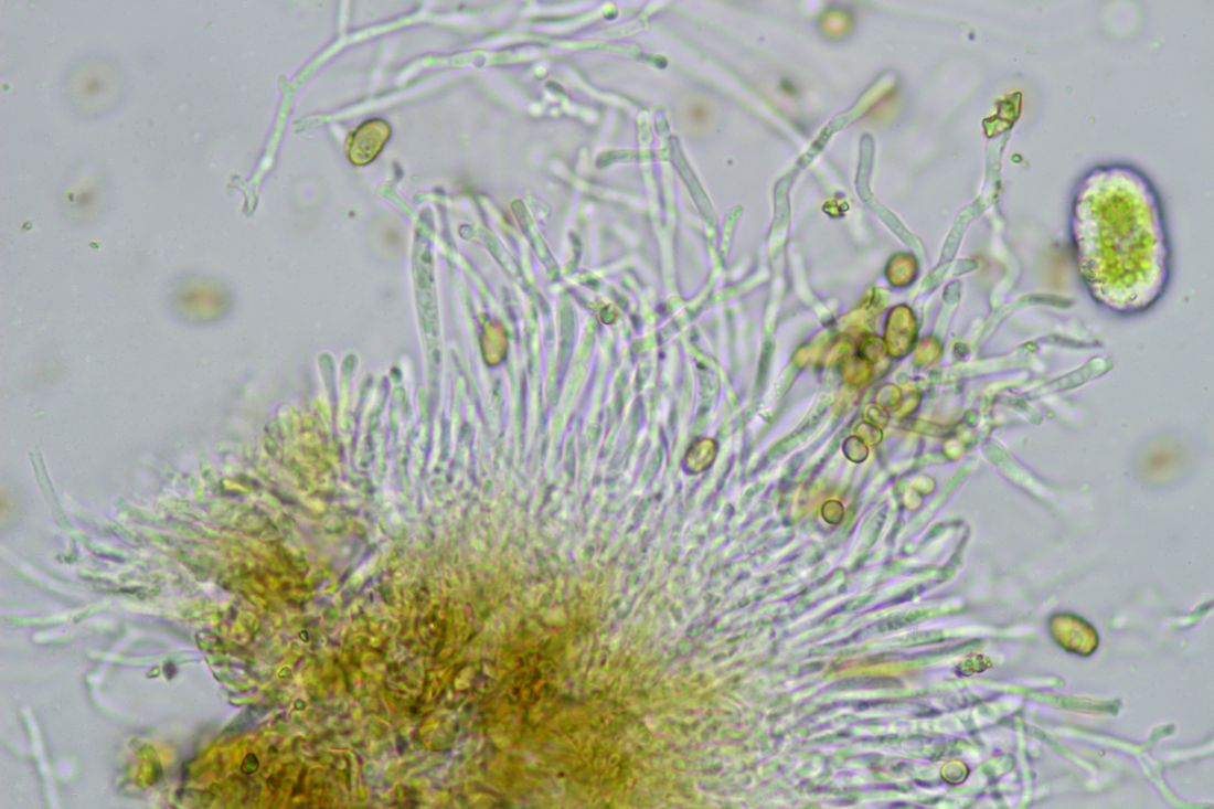 Die Fruchtkörper wirken überreif, es sind keine Strukturen wie Asci, Paraphysen etc. erkennbar.