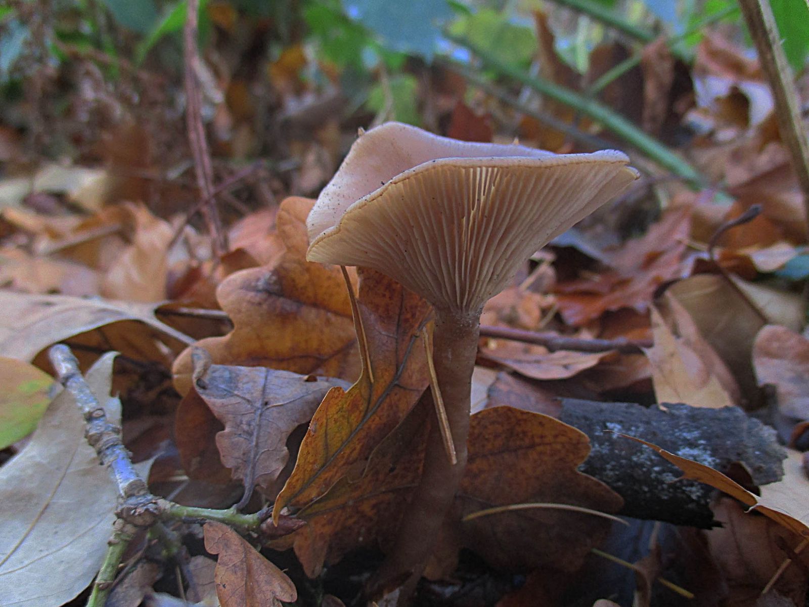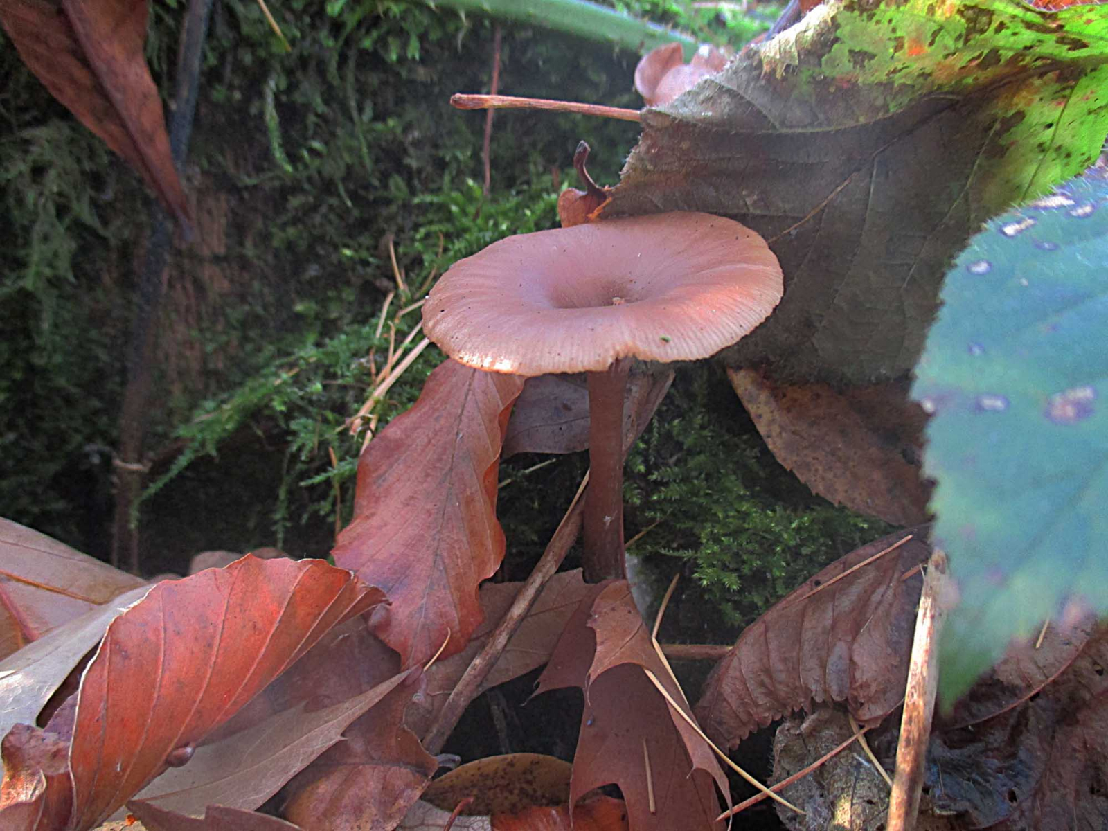 Könnte das der Ausblassende Gabeltrichterling (Pseudoclitocybe expallens) sein oder nur ein etwas zu heller Kaffeebrauner (Pseudoclitocybe cyathiformis).