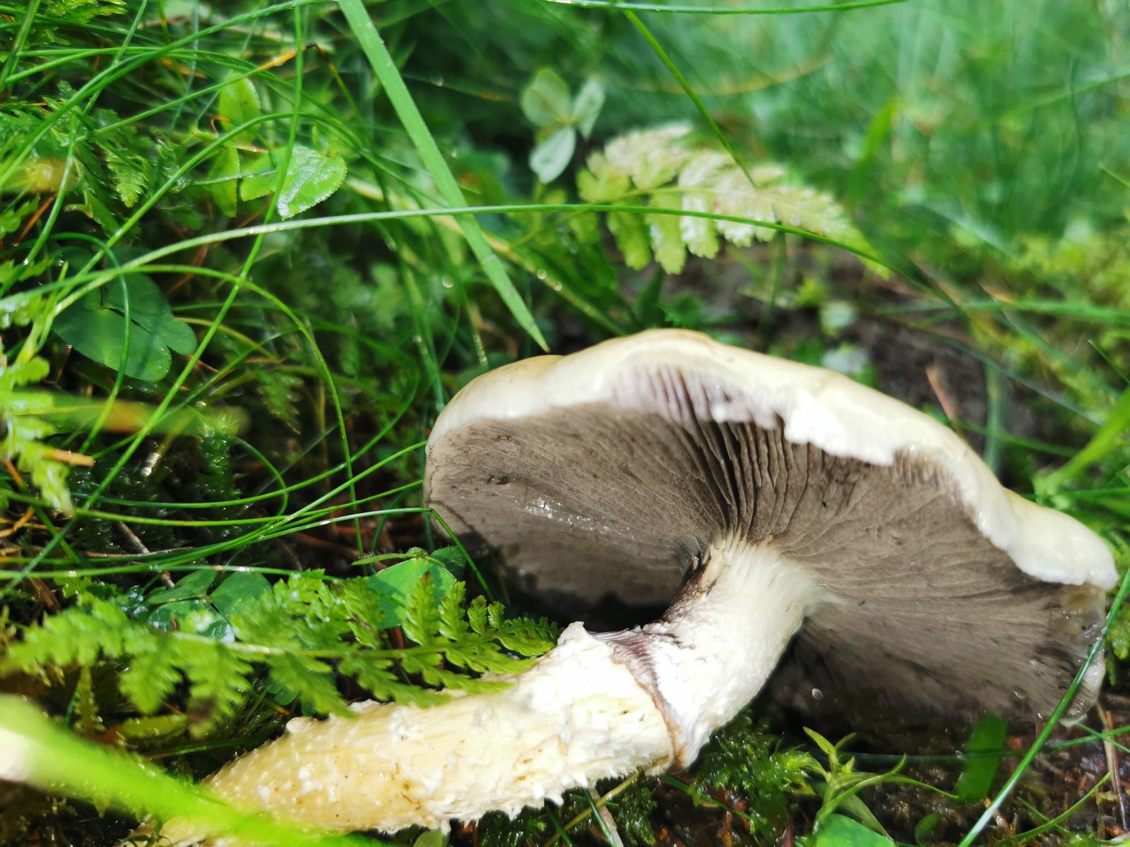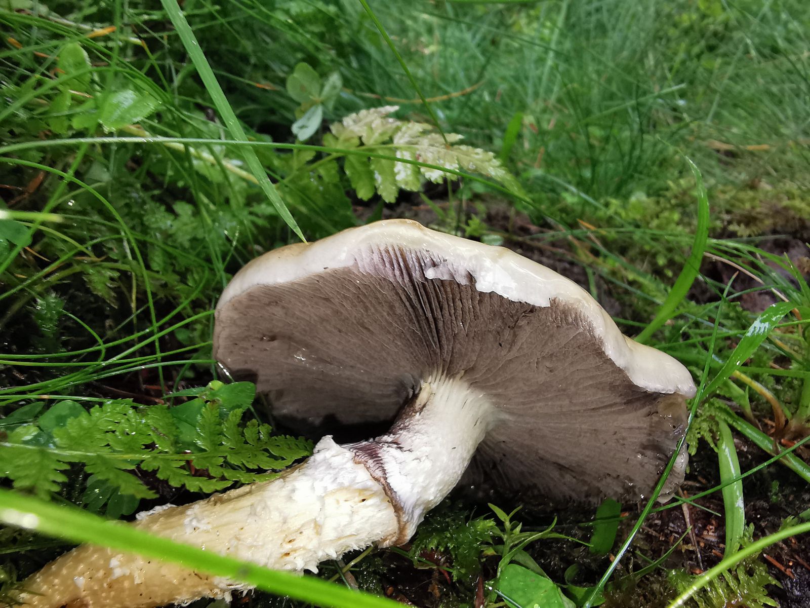 Lamellen: Grau (leichter violettstich), angewachsen, etwas herablaufend.