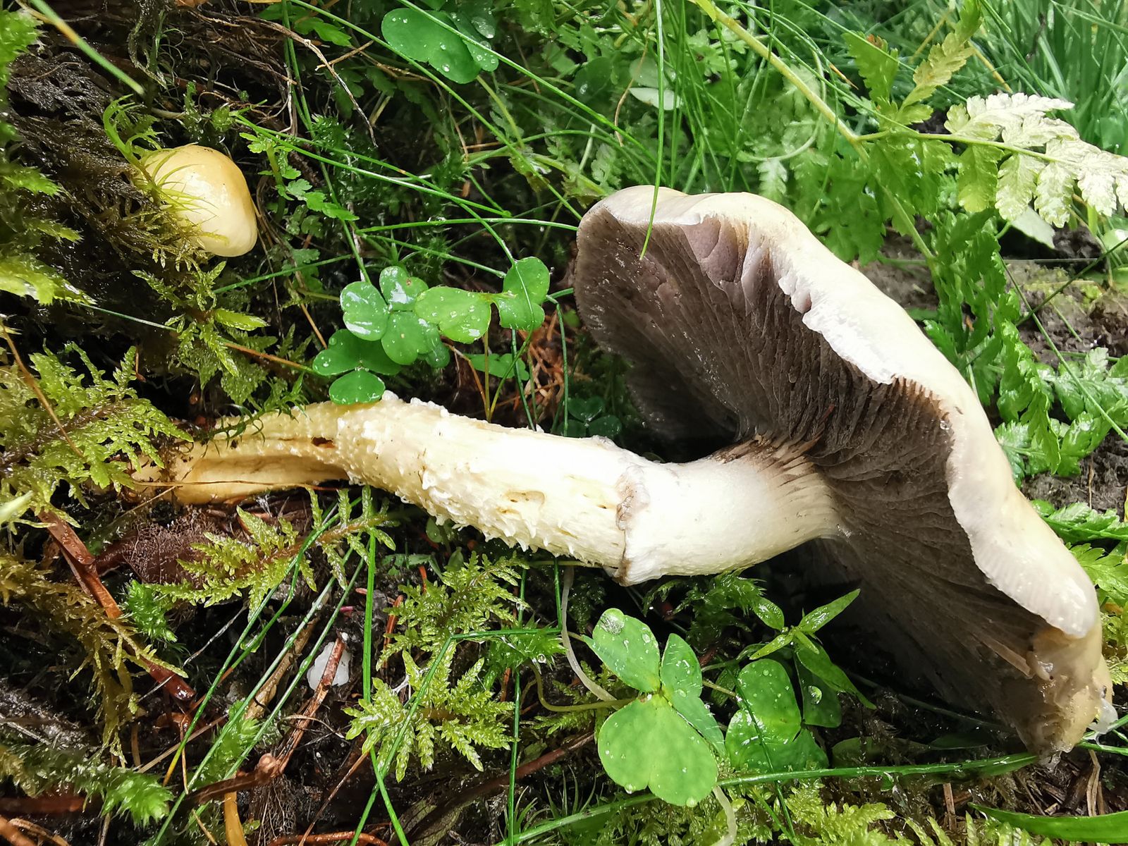 Vermutung: Der Stiel hat mich an den Grünspanträuschling (Stropharia aeruginosa), den ich kenne, erinnert, daher habe ich bei den Träuschlingen gesucht. Ich vermute den Üppigen Träuschling (Stropharia hornemannii). Was denkt ihr?
