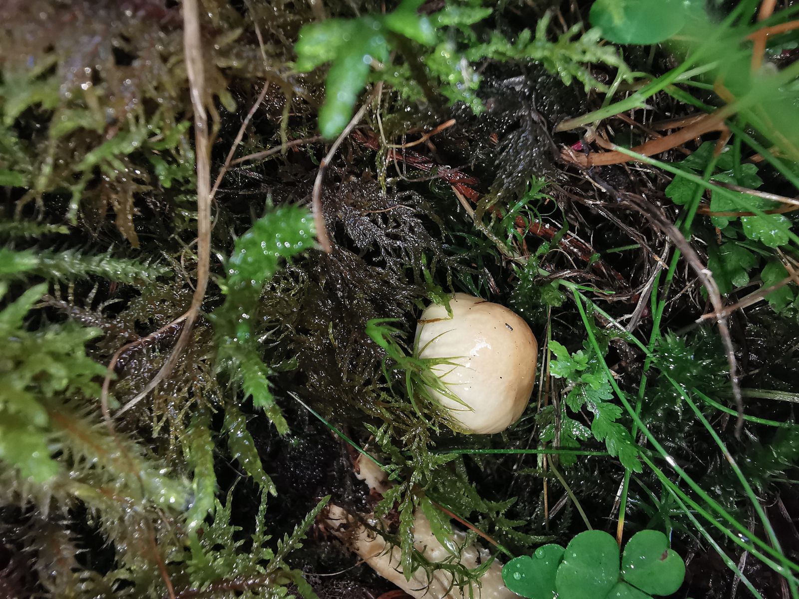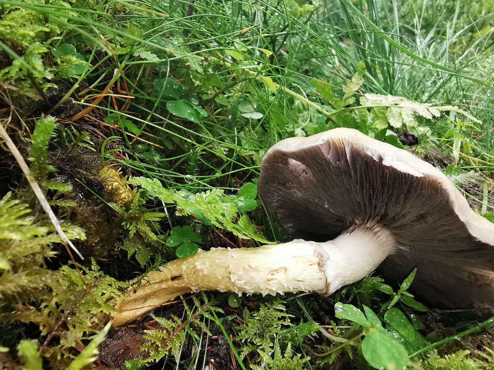 Ich glaube es war auch modriges Holz an der Stelle. Ich war leider etwas im Stress und es hat schon recht stark geregnet. Da nur ein Pilz dort stand, wollte ich ihn nicht entfernen und habe daher leider keine Geruchsprobe und auch Schnittbild für die Fleischfarbe.