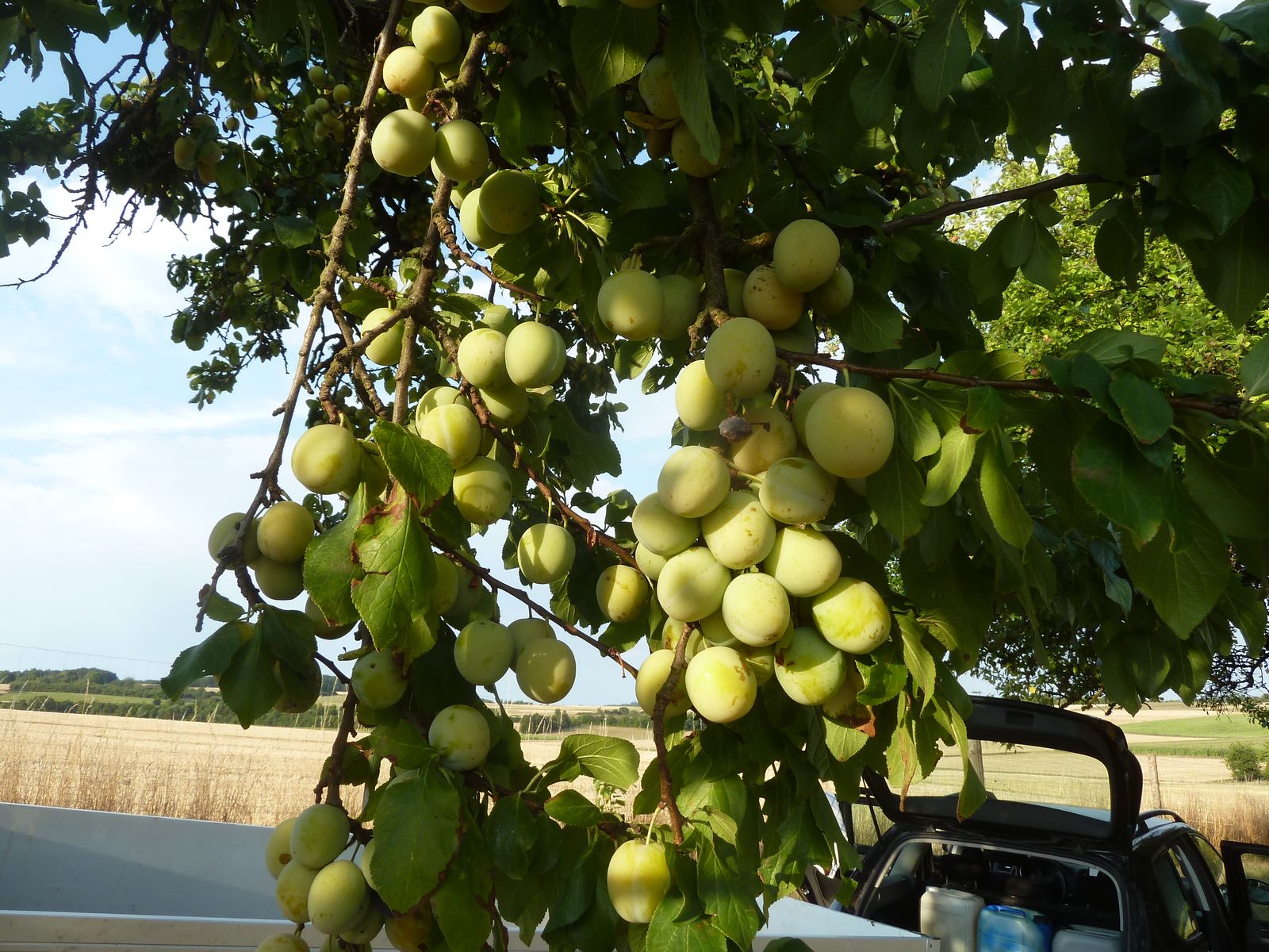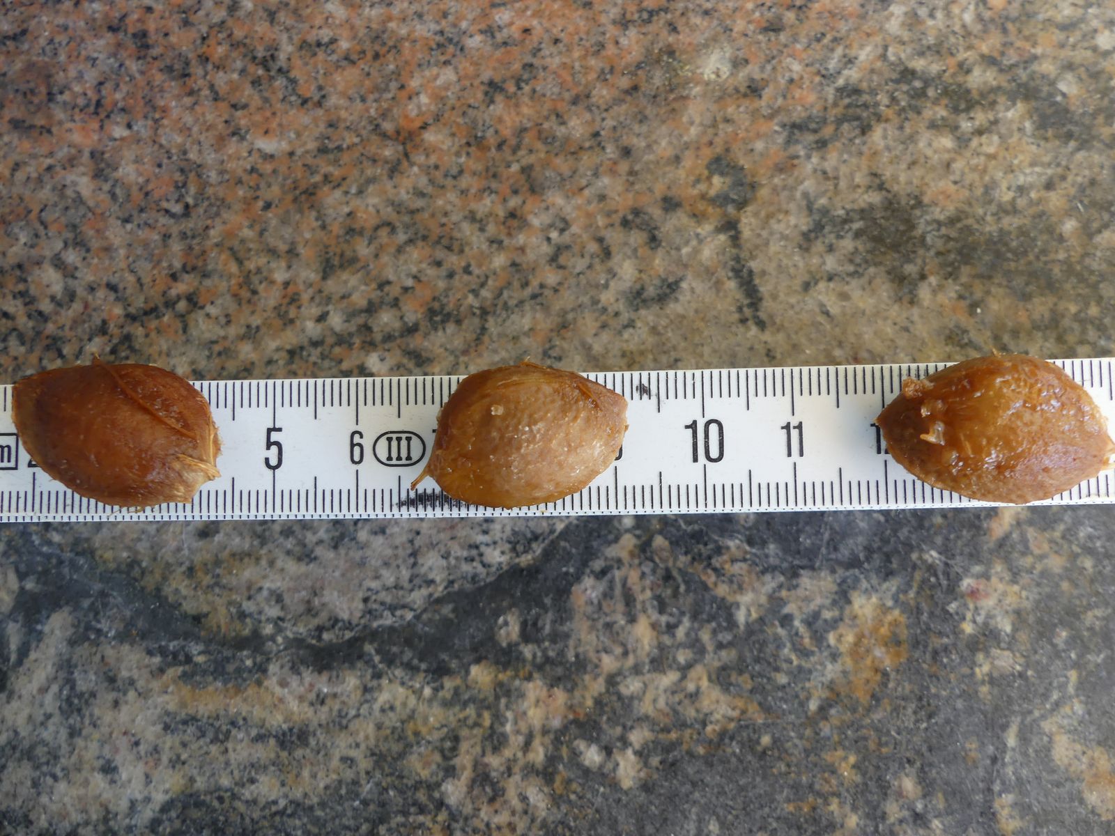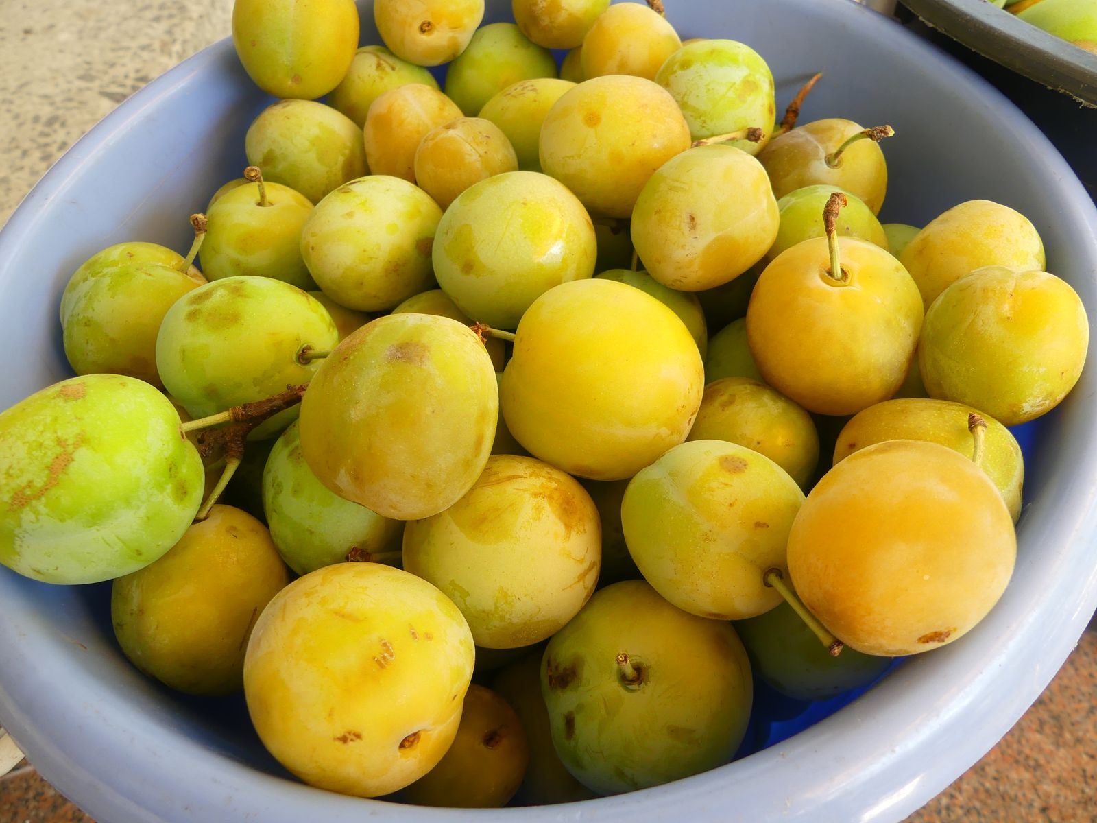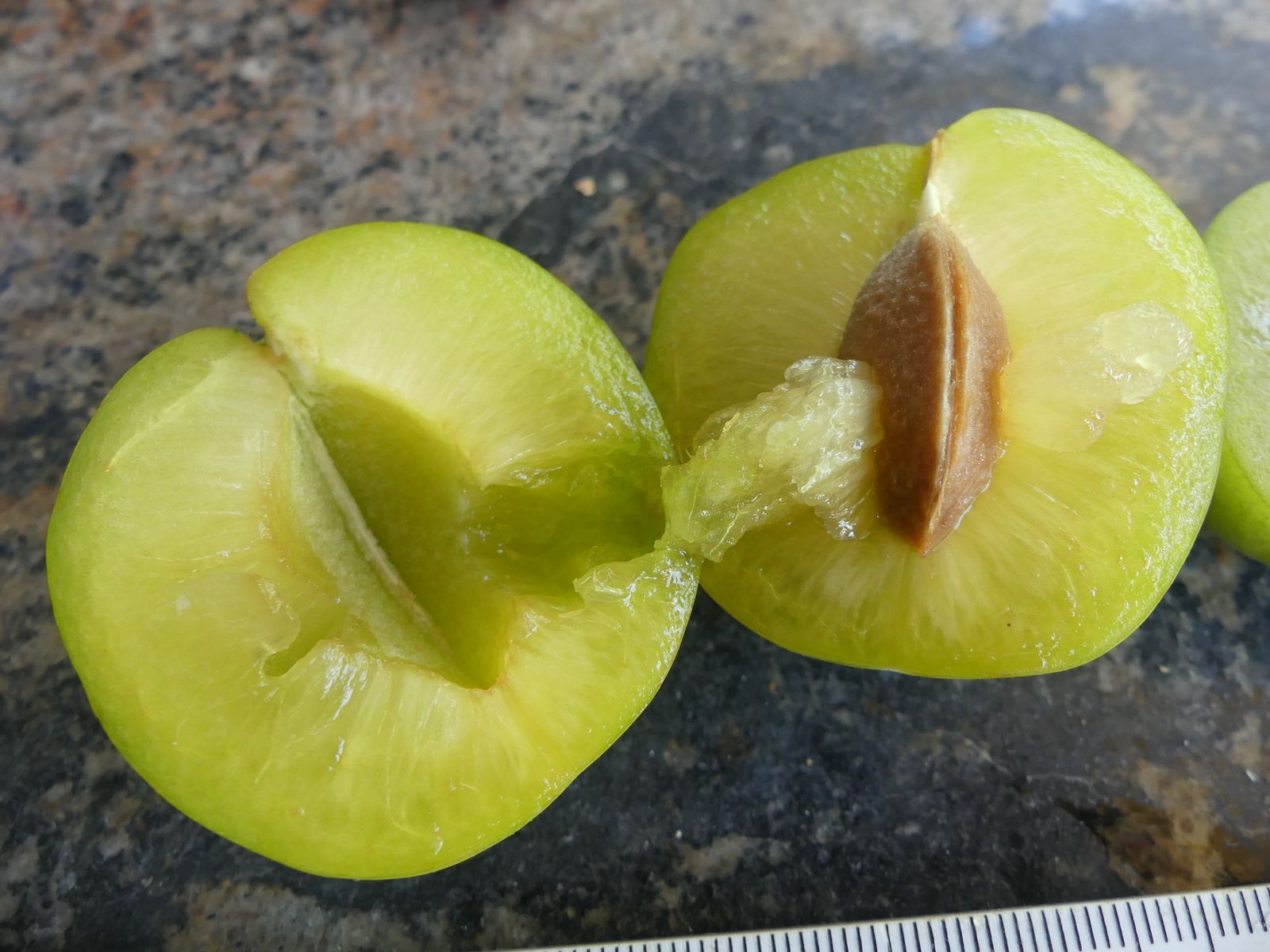 Der Stein löst sich auch bei ausgereiften Früchten nicht so einfach, das Fruchtfleisch ist nur schwach süßlich. Kein Vergleich zu den kleineren aromatischeren Mirabellen.