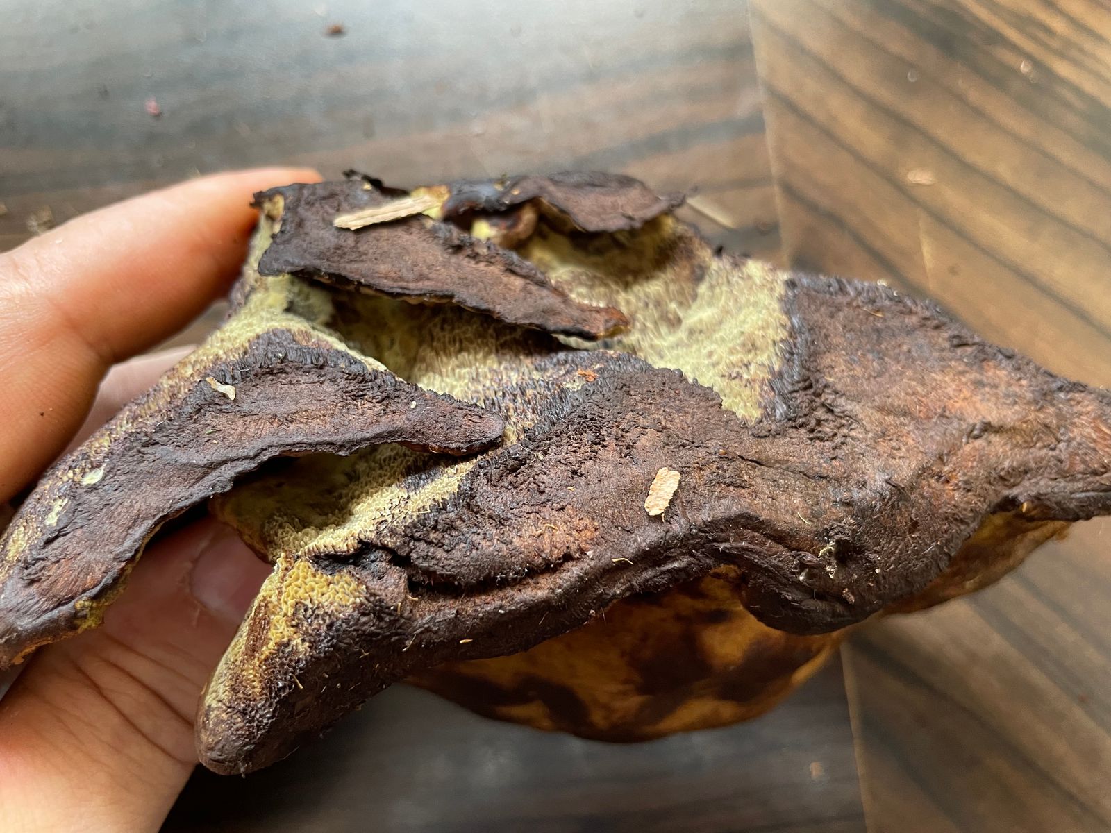 Der erste war vermutlich (war ein zersägter Baum) von einer Buche, Konsistenz korkartig.