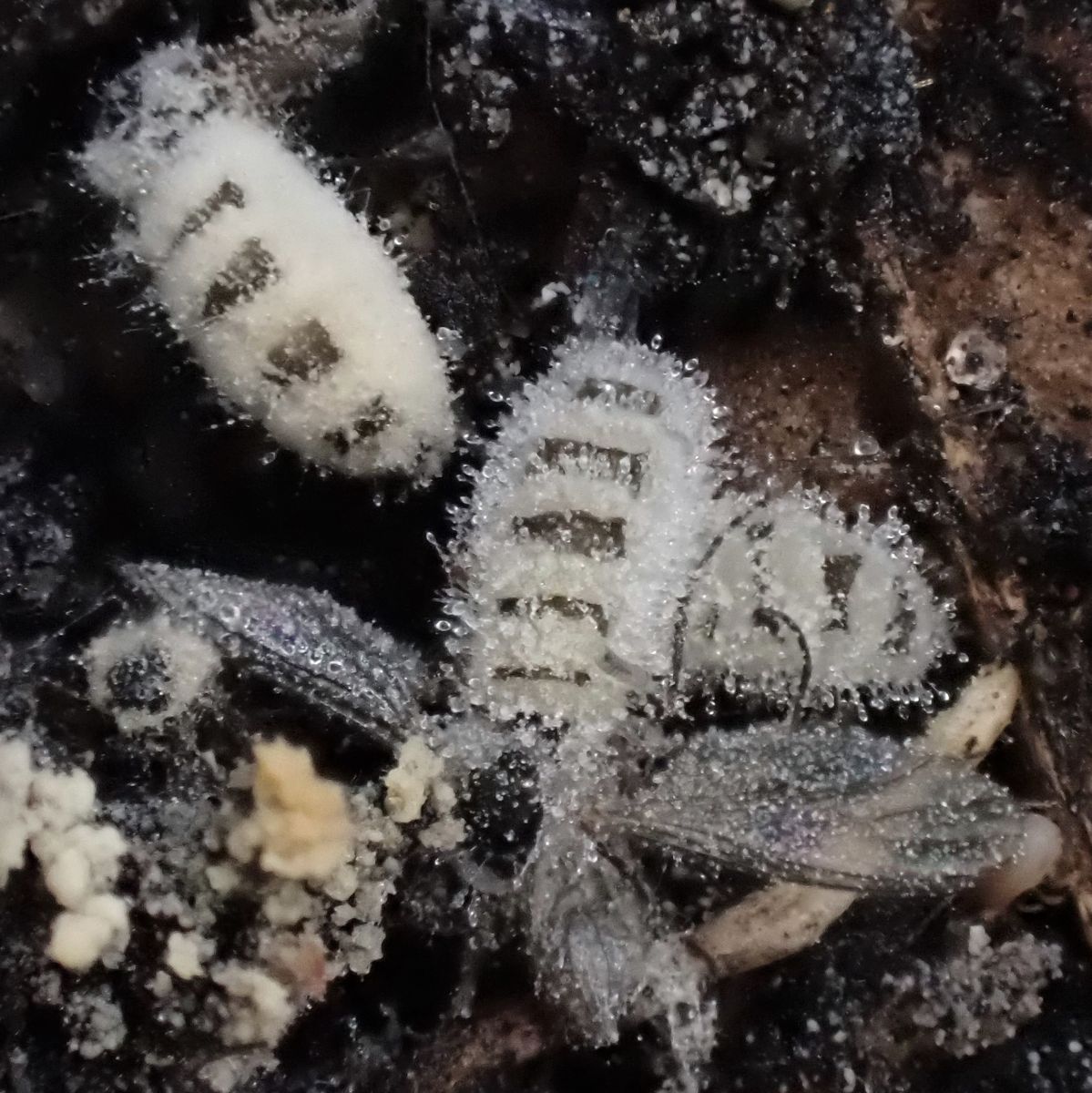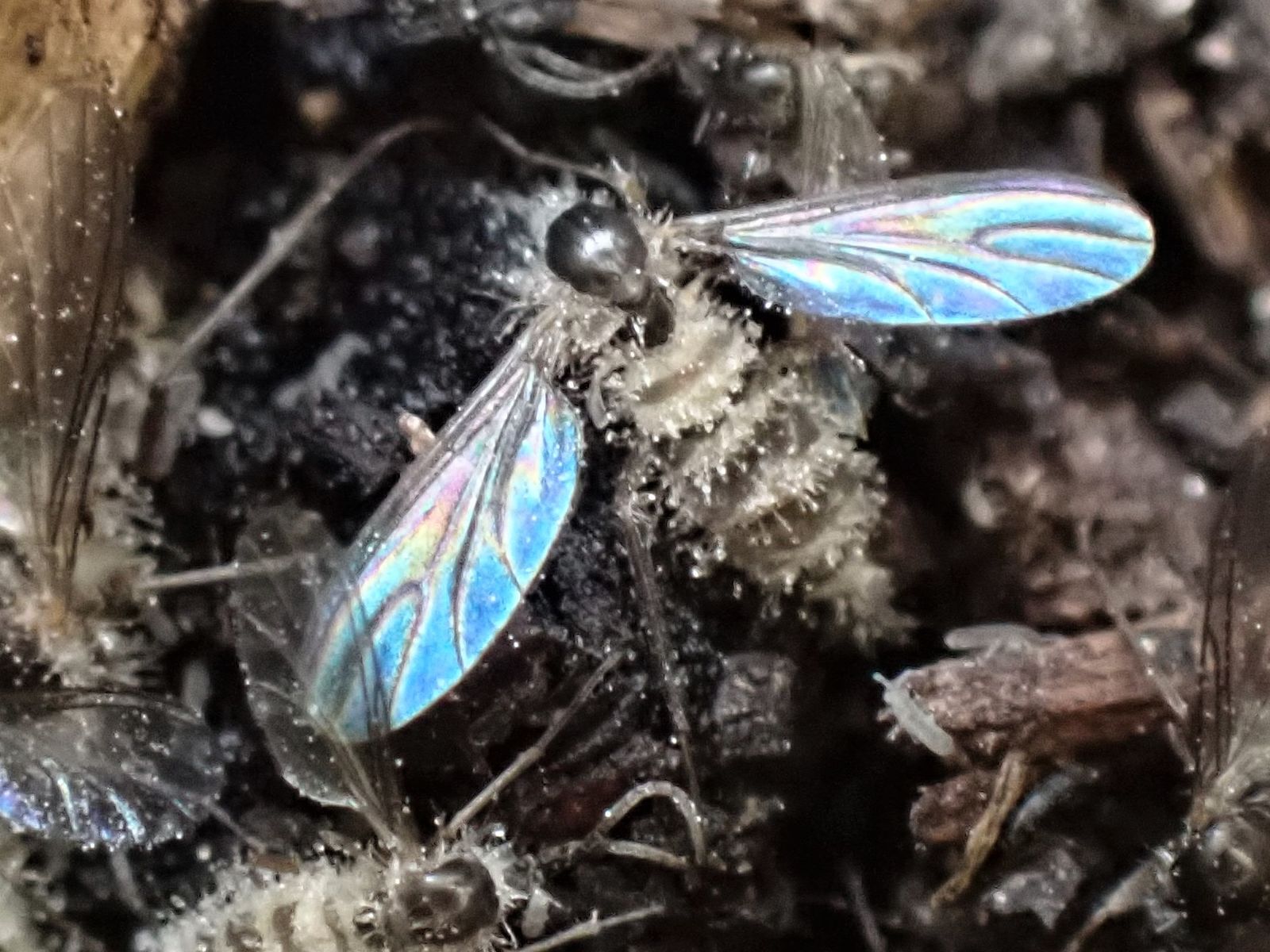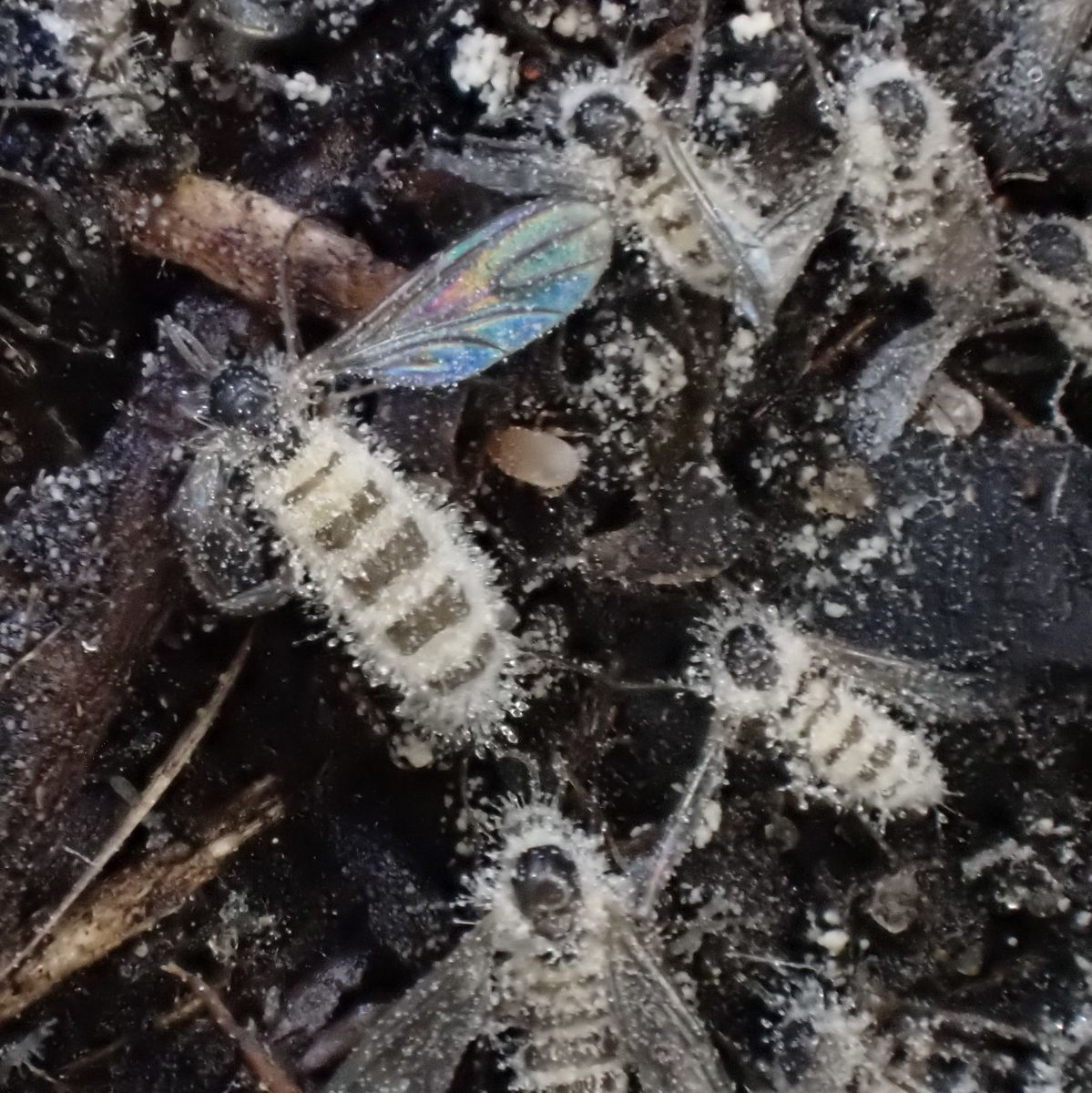 Trauermücken-Friedhof, alle von einem Fliegentöterpilz befallen!