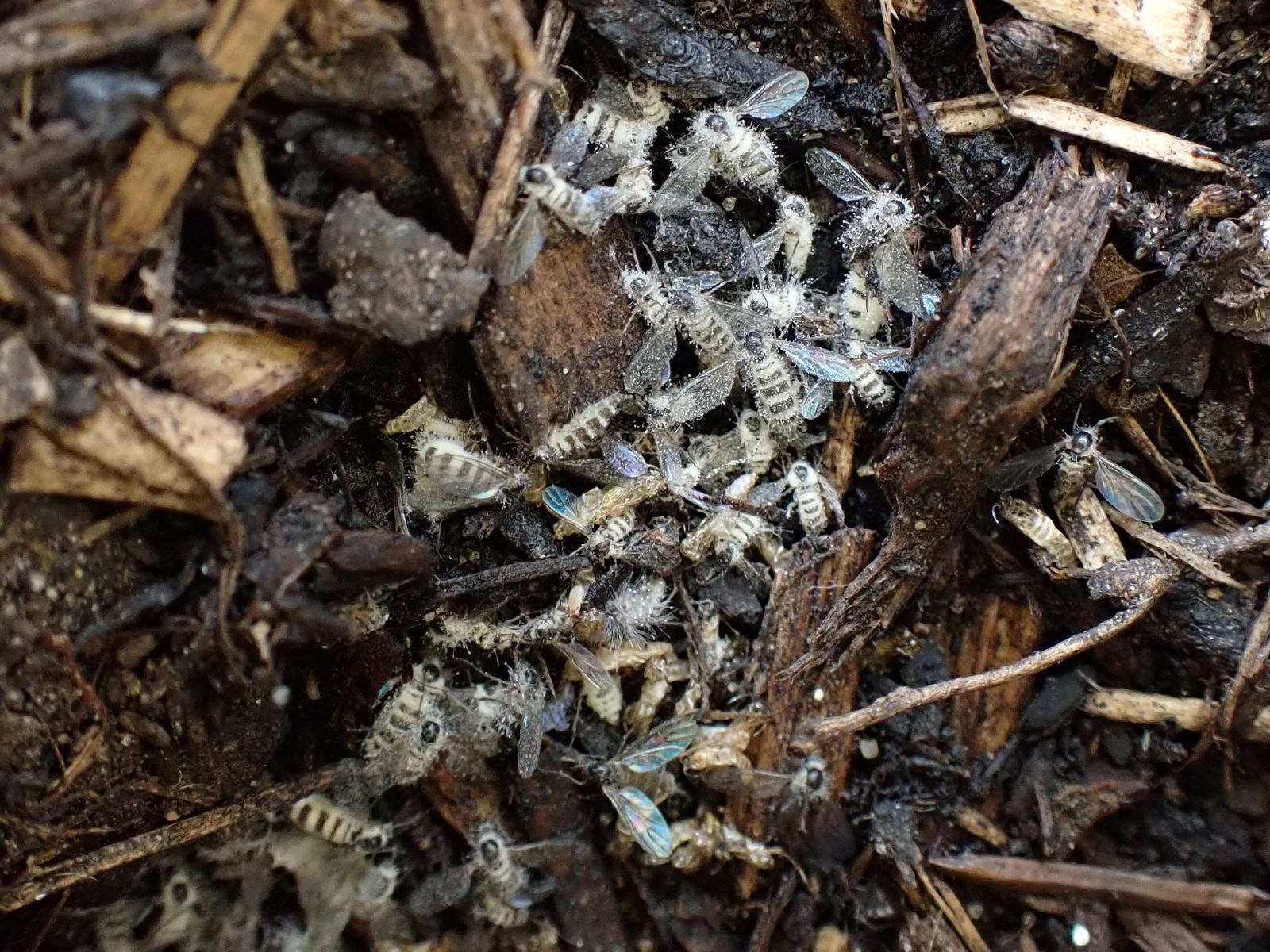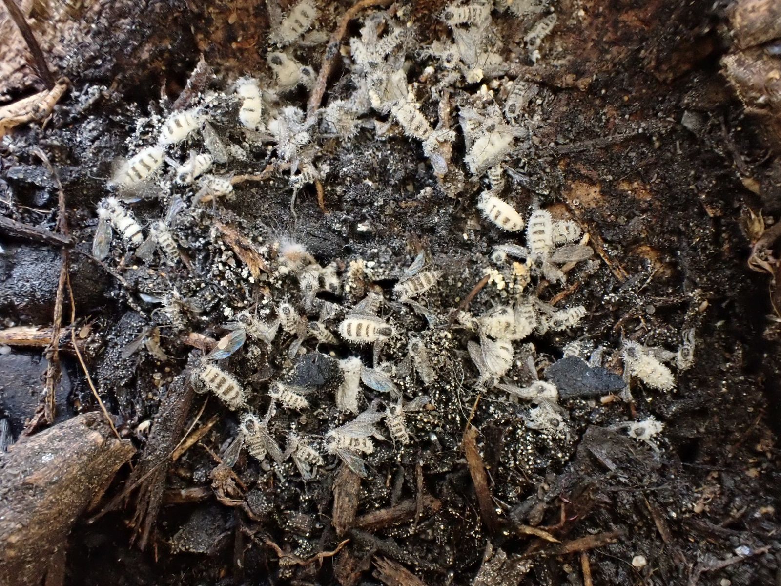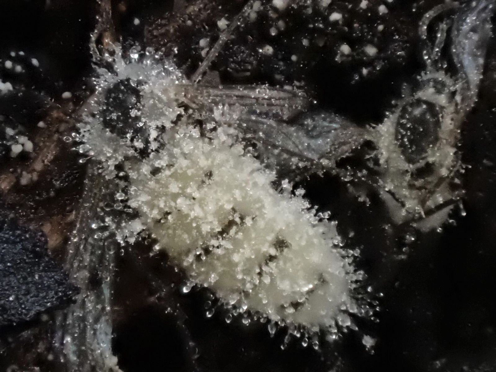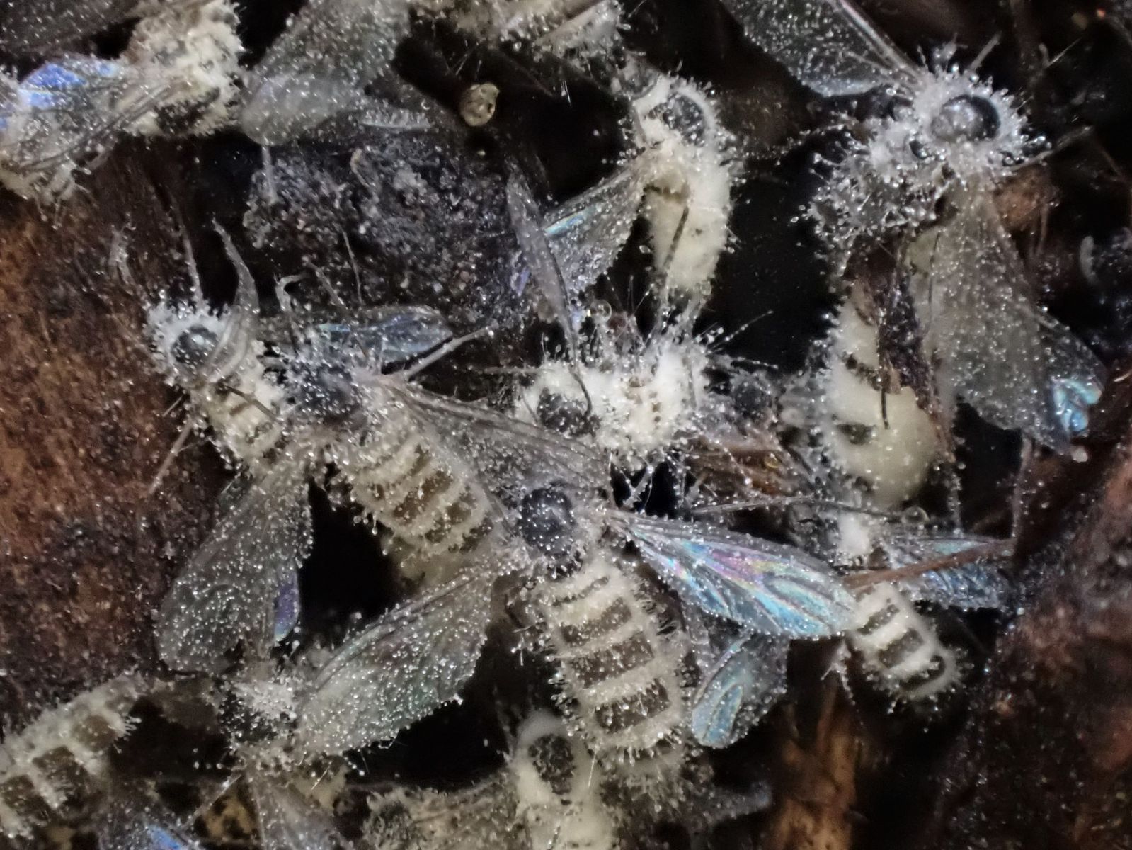 Trauermücken-Friedhof, alle von einem Fliegentöterpilz befallen!